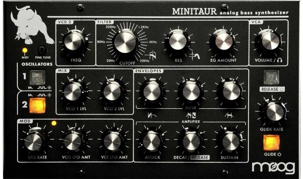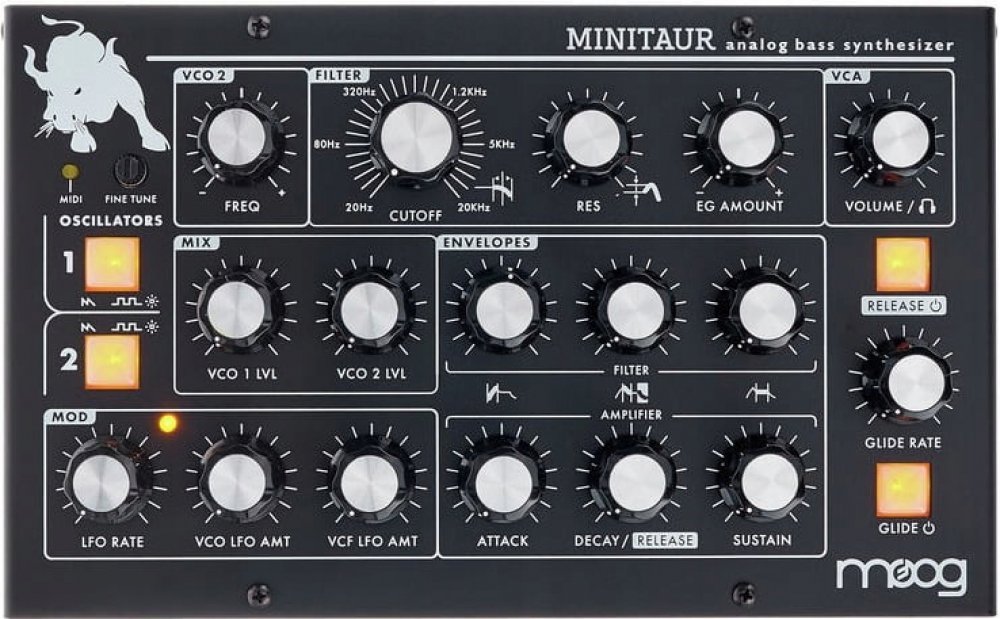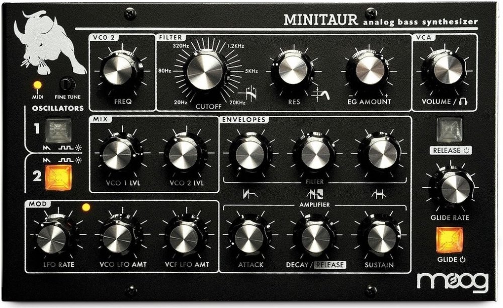 MINITAUR je především lehký a malý basový syntezátor s moderním ovládáním a klasickým mohutným Moog zvukem, který je založen na technologii Taurus III.