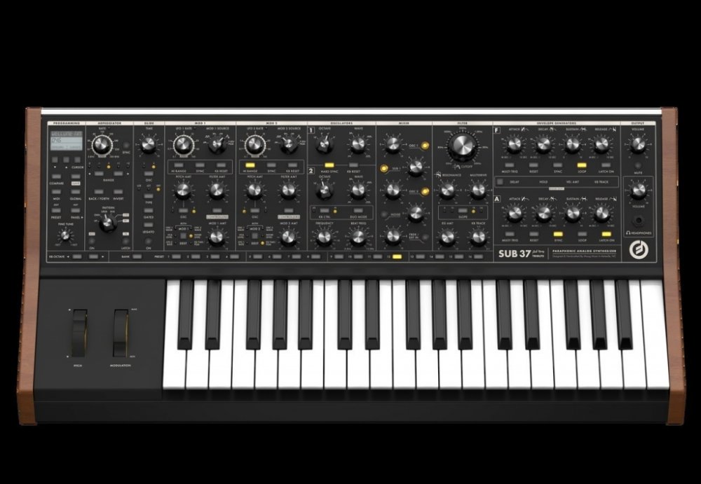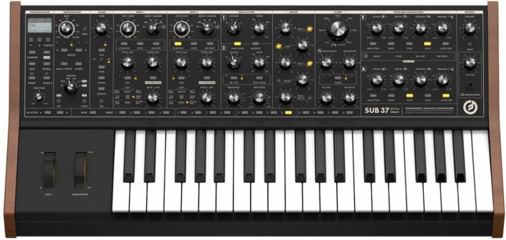 Analogový syntezátor Analogový zvuk = Moog. Subsequent 37 navazuje na Sub 37 a jde o analogový syntezátor s parafonií (2 noty). Na předním panelu se nachází celkem 40 knobů a 74 switchů, takže zvuk můžete okamžitě pilovat a tweakovat do nejjemnějších detailů. Díky dvojitému navýšení headroomu se nově otevírají možnosti tvorby čistého tónu jak v mono, tak v duo režimu. Filtr byl vytvarován tak, aby zvýrazňoval harmonickou saturaci a analogovou kompresi, díky čemuž došlo k celkovému zvýraznění nízkých frekvencí. Typický zvuk Sub 37 obohacuje i přeladěný obvod Multidrive, který signál náležitě zašpiní. Dalším vylepšením prošla klaviatura a sluchátkový zesiliovač si nyní poradí i s profi modely náročnými na impedanci. Nechybí ani softwarový editor pro PC a Mac, díky němuž se můžete ponořit až na samé dno zvukového designu. Subsequent nabízí legendární zvuk Moog vyladěný s ohledem na požadavky moderních hráčů.