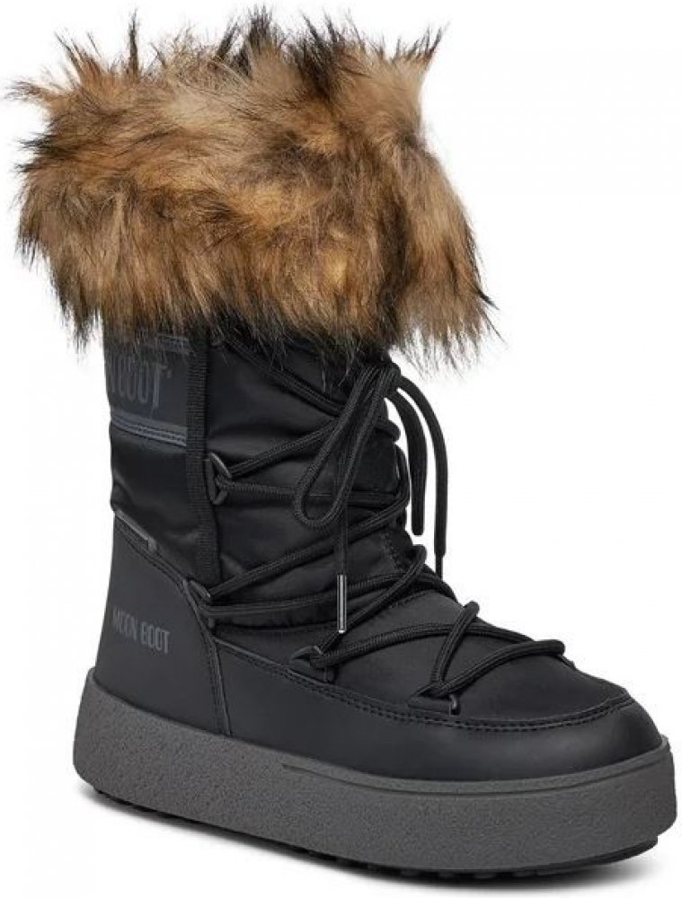Černé dámské sněhule Moon Boot LTRACK MONACO LOW WP jsou modelem v nadčasovém provedení. Během chladných zimních měsíců nemohou chybět na nohách žádné milovnice stylových a zároveň pohodlných módních řešení. Díky univerzálnímu barevnému provedení a klasickému designu je snadno zakomponujete do svých oblíbených outfitů, určených do zimního počasí. Svršek sněhulí vznikl z odolné nylonové tkaniny s vodoodpudivou úpravou povrchu, která poskytuje dostatečnou ochranu proti vlhkosti a větru při nepříznivém počasí. Boty byly ozdobeny umělým kožíškem a páskem, na němž se nachází název značky. Zavazování je řešeno pomocí charakteristických dlouhých tkaniček. Model zimních bot byl vybaven přizpůsobivou výložkou, s jejíž pomocí se dopasuje ke tvaru chodidla a boty se tak budou nosit po celý den příjemně. Silná podešev vznikla z termoplastického gumového materiálu, který odolává nízkým teplotám a chůze se díky němu stane stabilní.