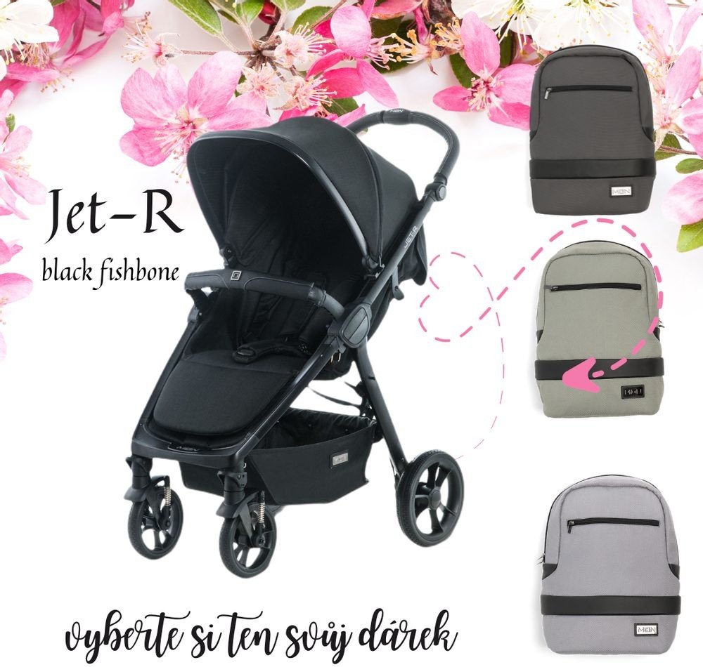 AKCE pro barvy kočárku JET-R black fishbone a grey nylon ! + batoh jako dárek. Batohy jako dárek jsou dostupné v barvách taupe, stone grey a antra Nabídka platí do vyprodání zásob. Sportovní kočárek MOON JET-R je praktický, lehký a elegantní. Mezi přední vlastnosti patří lehké skládání a ovládání jednou rukou, gumová kola s odpružením, roztažitelná stříška s integrovanou ventilační síťkou a výškov...