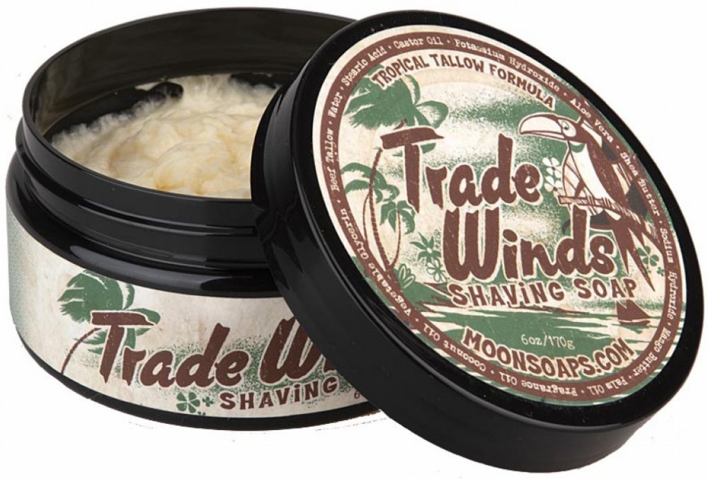 Trade Wings je měkké, ručně vyráběné mýdlo na holení s čistě přírodními složkami. Obsahuje exotická másla, rostlinné směsi z palmového, kokosového a mangového oleje, jenž zajišťují hydrataci pokožky. O skvělou klouzavost mýdla se stará živočišný hovězí lůj. Díky měkké konzistenci se štětkou skvěle našlehává v hustou, stabilní a hladkou pěnu, která chrání pokožku a zaručuje bezproblémový průchod žiletkovým strojkem nebo břitvou.Vůně mýdla Trade Wings je letní, svěží a retro - směs přírodních esenciálních olejů tropického bobkového listu, hřejivého tabáku, cedrového dřeva, špetky bergamotu a limetky.Mýdla od Moon Soaps jsou vyráběna v Kalifornii v malém množství.Obsah 170 g. Vyrobeno v USA.
