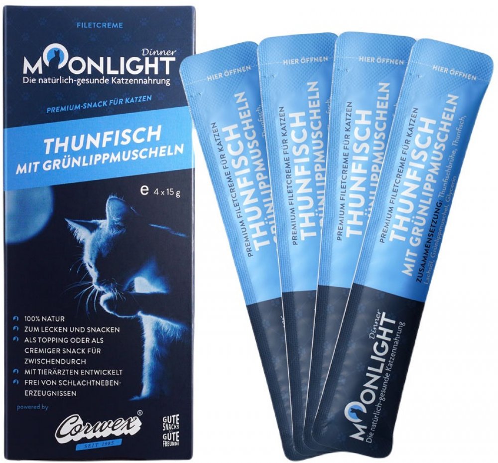 MOONLIGHT Dinner Tuna with mussel - pamlsek pro kočky - 4x15g