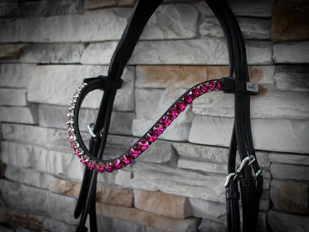 Moonrian Třpytivá čelenka na uzdečku THIN LINE DECENT FUCHSIA černá Rychlozapínání Velcro