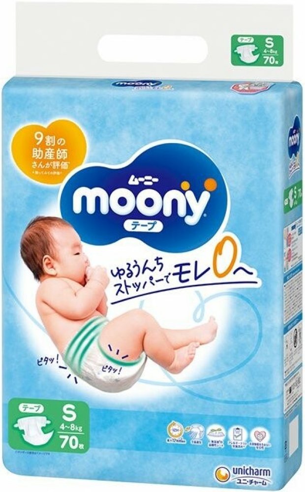 Jednorázové pleny Moony jsou určeny pro miminka s hmotností 4–8 kg a vynikají svou výjimečnou jemností a prodyšností. Díky unikátnímu 3D tvarování a elastickému materiálu plenky dokonale obepínají tělo dítěte, aniž by jej škrtily. Speciální střih v oblasti pasu i nožiček účinně zabraňuje protečení. Vysoce absorpční jádro udržuje pokožku v suchu po 12 hodin. Indikátor vlhkosti změnou barvy včas upo...