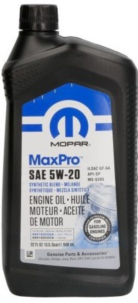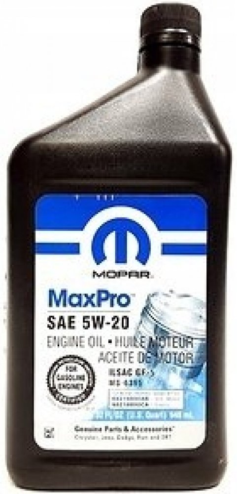 Originální olej Mopar Max Pro 5W-20 je navržen tak, aby poskytoval zlepšenou spotřebu paliva, čistotu motoru a kompatibilitu s etanolem pro vaše vozidla Chrysler, Jeep, Dodge, Ram a Fiat. Chrání motor Chrysler / FIAT.