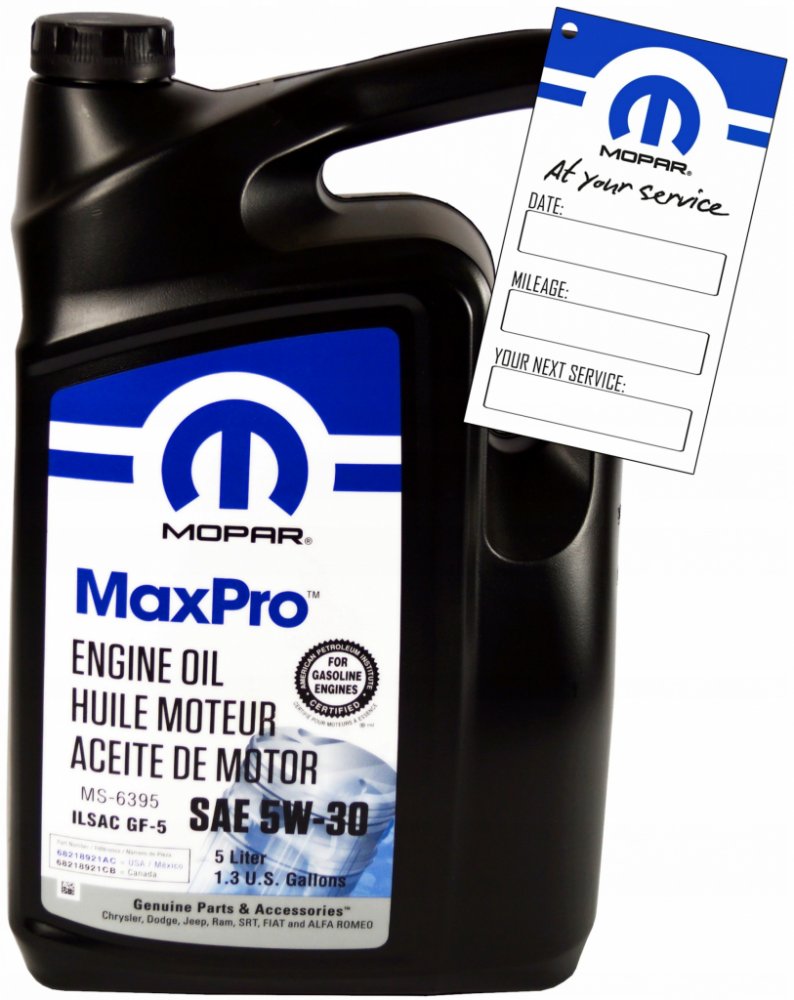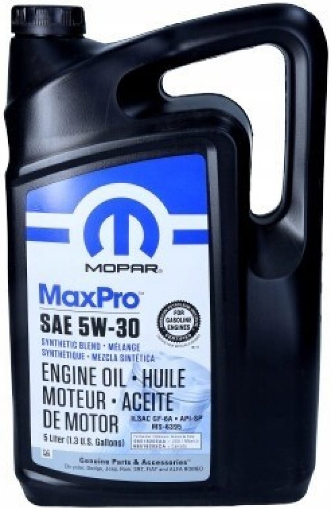 Mopar SAE 5W-30 je polosyntetický olej pro benzínové motory. Navrženy speciálně pro použití v moderních benzínových motorech pro automobily Chrysler, Jeep a Dodge. Motorový olej Mopar MaxPro je určen pro motory, kde výrobce automobilů předepisuje použití oleje s viskozitou specifikace SAE 5W-30 a MS-6395.