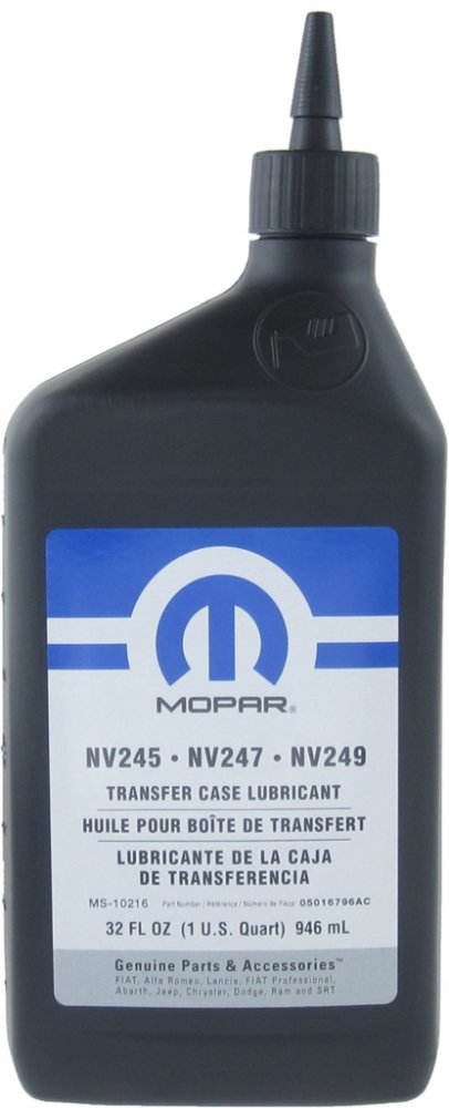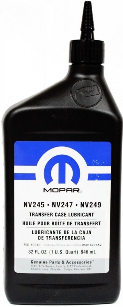 Originální olej do přídavných převodovek (transfer case) typu NV245, NV247 a NV249. Norma: MS-10216 Balení: 946 ml (32 Oz.) OEM: 05016796AC, 05016796AD, 05016796AA, 05016796AB, 05016796EA, 68065072AA