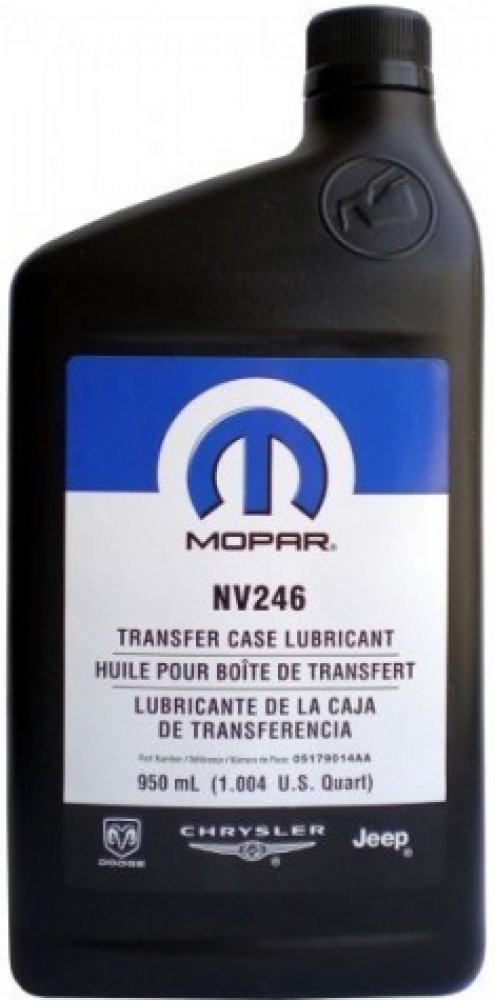 Mopar olej do přídavných převodovek (transfer case) typu NV246.Popis v angličtině:Unique lubricant required for NV246 in 2006 DR Truck.Typ rozvodovky:NV246Balení:950 ml (1.004 quart)OEM:05179014AA