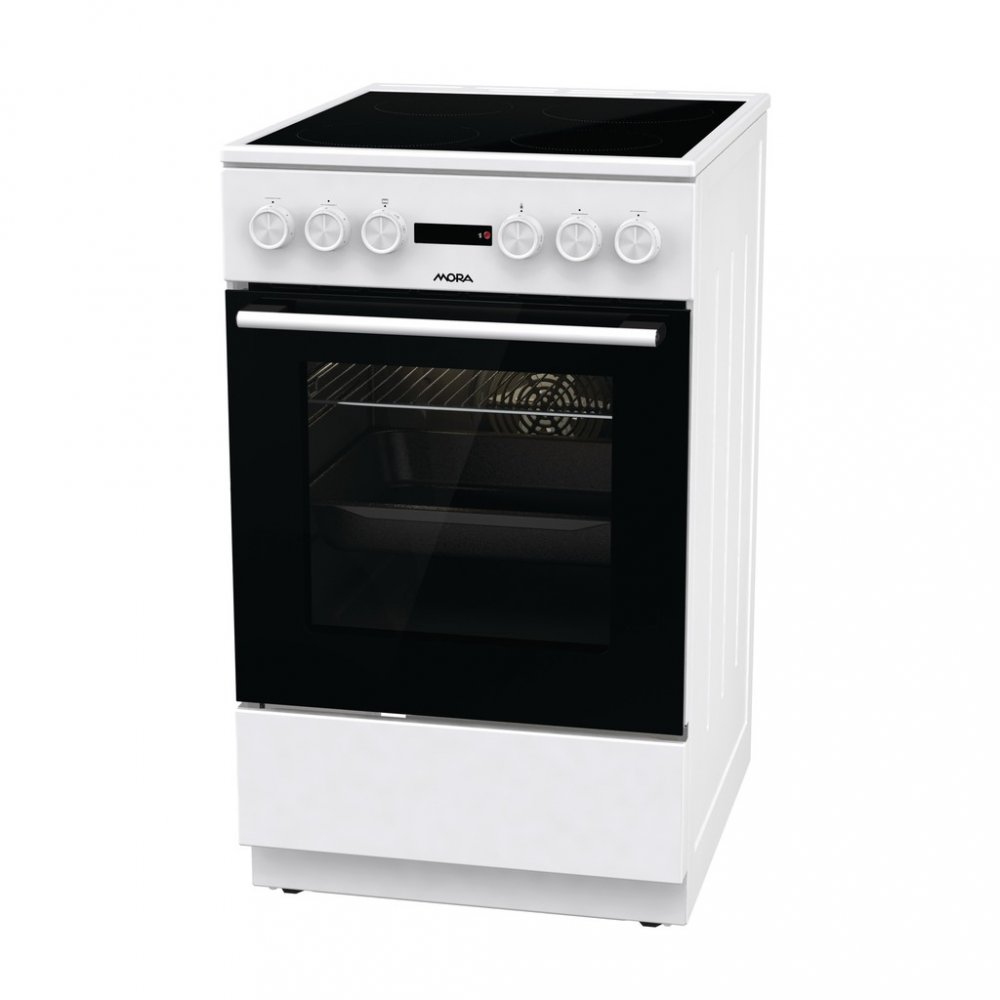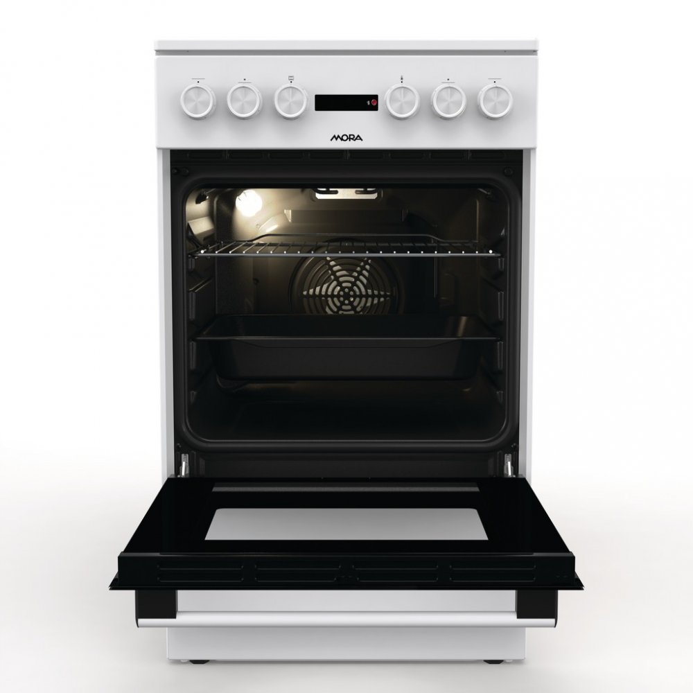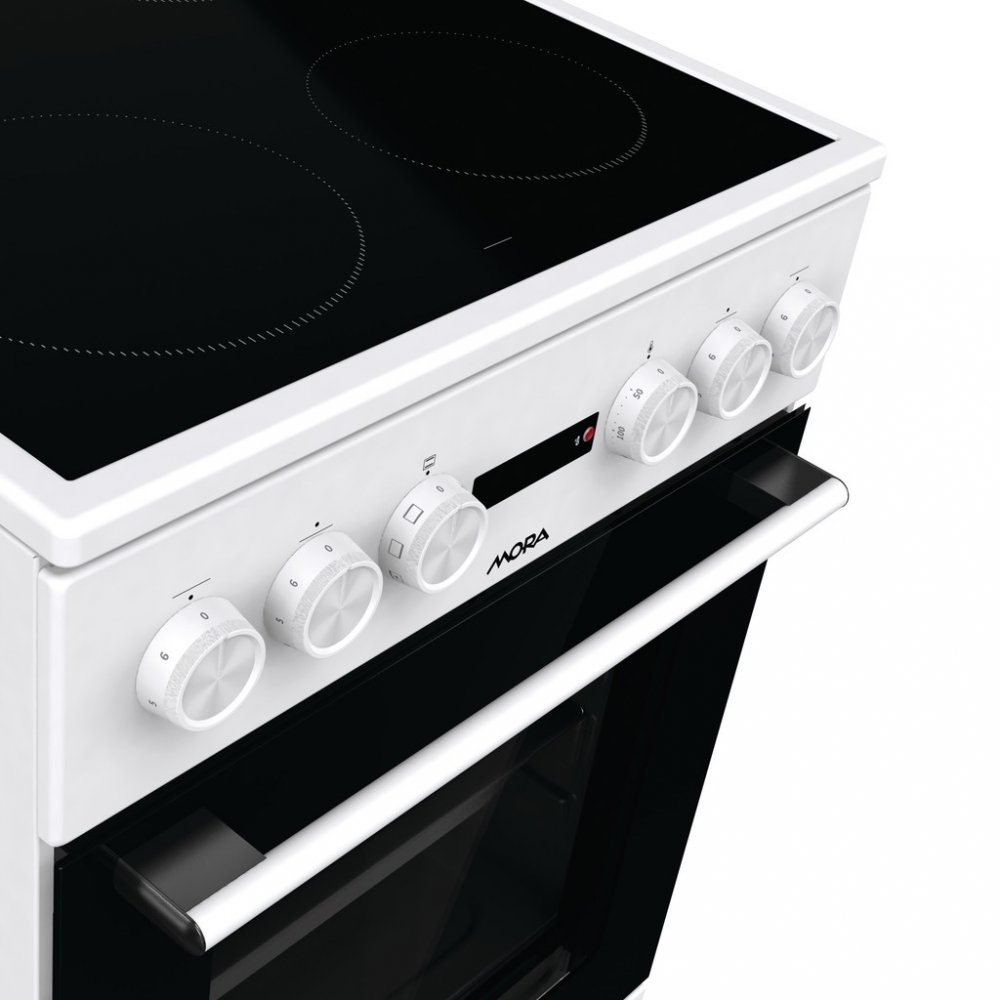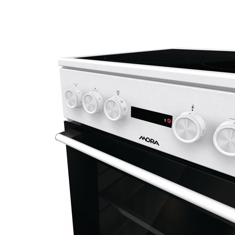 elektrické 37.4 kg bílá Mora 8 sklokeramické otočné knoflíky 4 A 0.77 kWh 9000 W 62 l 59.4 cm 85 cm 50 cm prolisy hydrolytické