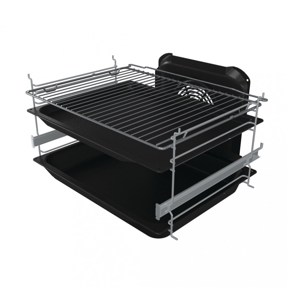 Nové bezpečné závěsy dvířek zaručují bez Vaší asistence velmi tiché a šetrné zavírání dvířek trouby. Pro zvýšení komfortu obsluhy je trouba vybavená teleskopickým výsuvem, které umožní bezpečnou manipulaci s připravovaným jídlem, aniž byste ho museli z trouby vytáhnout.