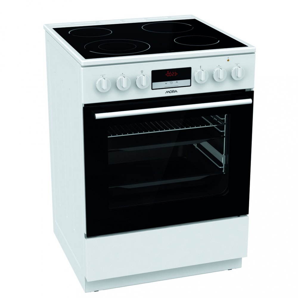 Elektrický sporák C 8678 BW6 v šířce 60 cm v klasickém bílém provedení se sklokeramickou deskou a multifunkční troubou energeticky spadá do úsporné třídy A.