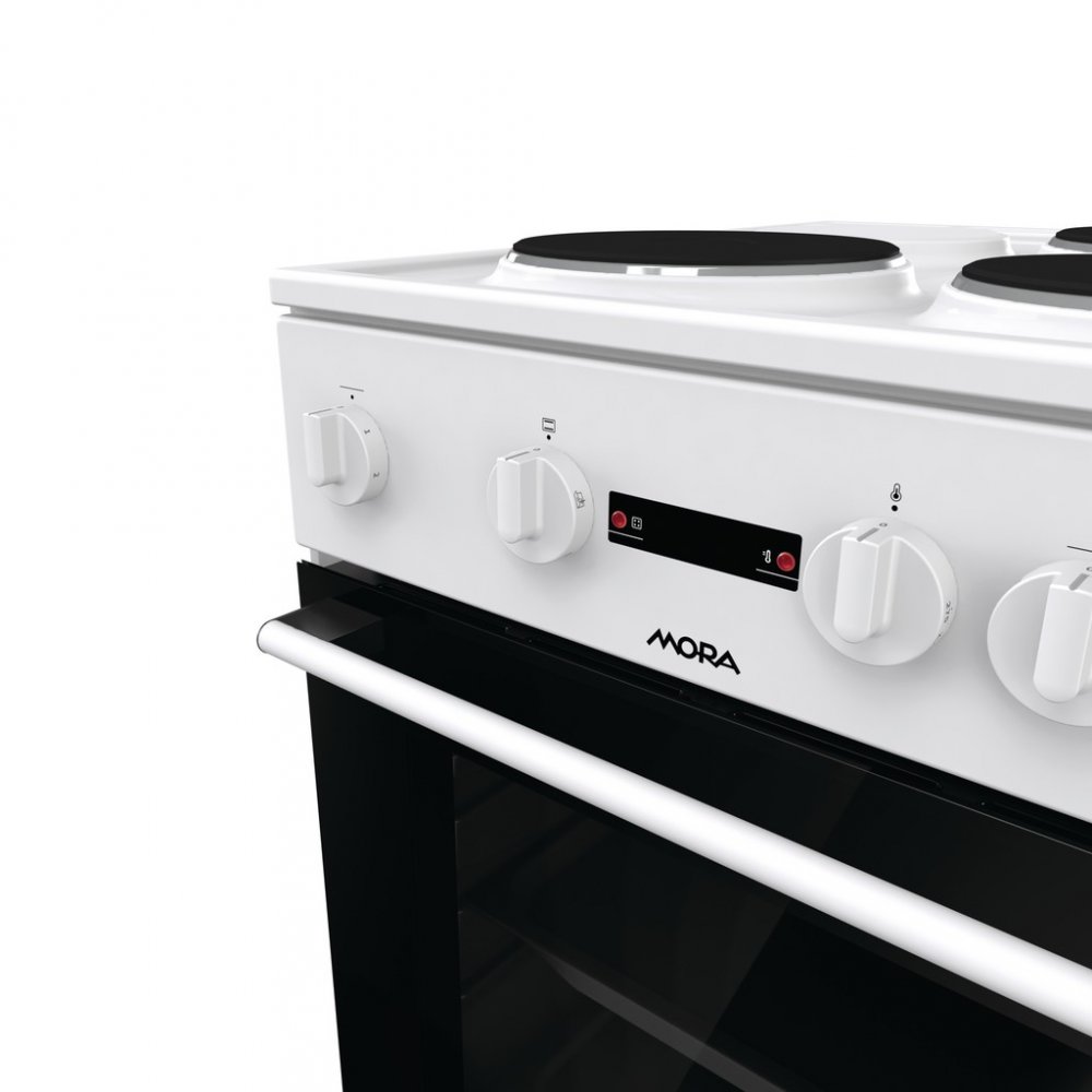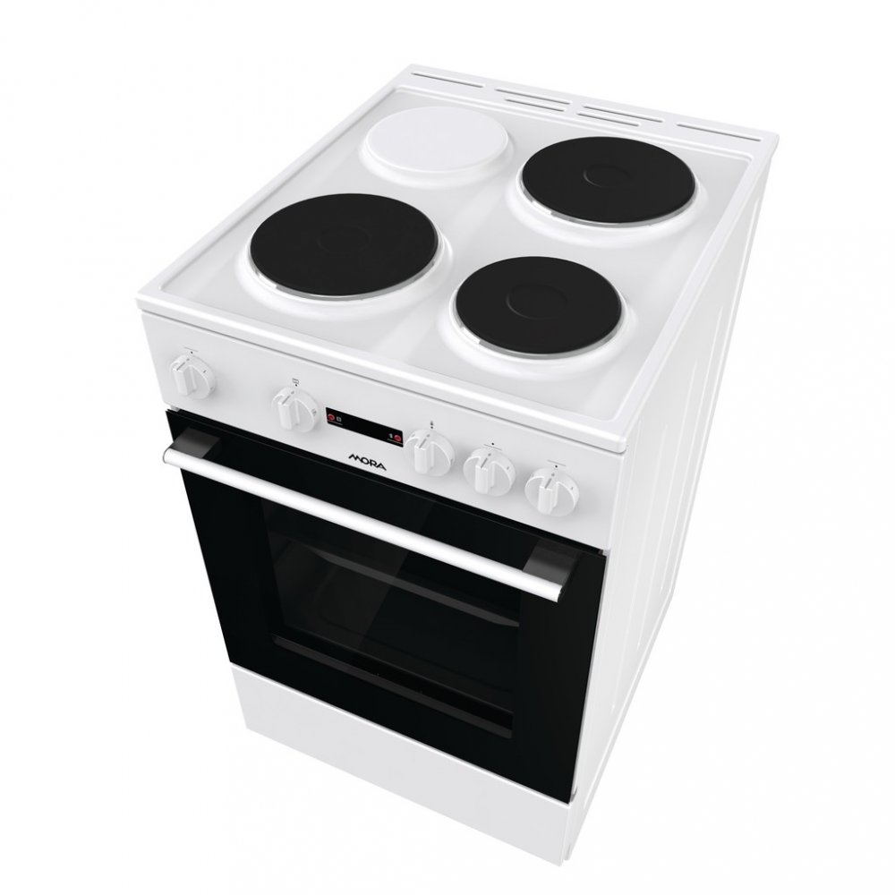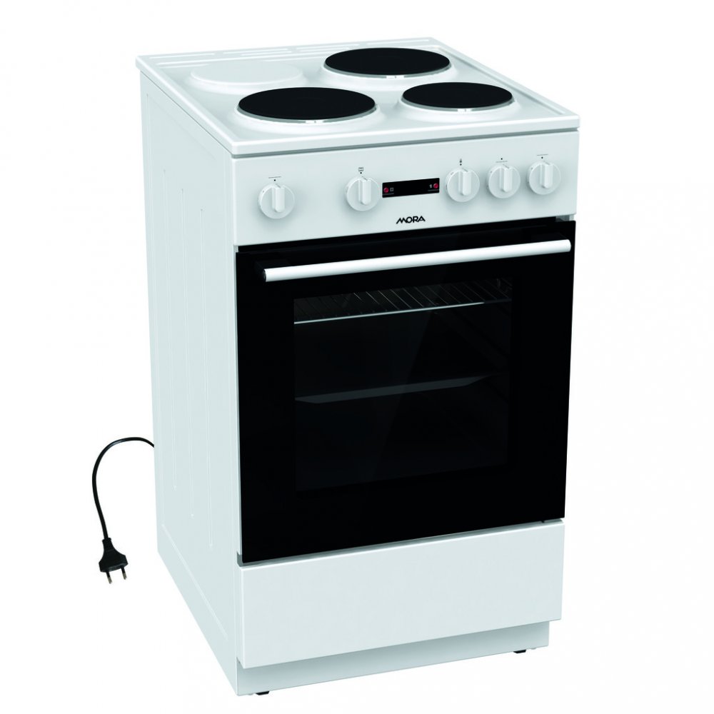 Elektrický sporák Mora E 2231 AW v bílém provedení se 3 litinovými plotýnky a klasickou troubou překvapí úspornou energetickou třídou A a objemem trouby 68 l. Kromě klasického pečení má trouba i speciální program na čištění trouby ECO CLEAN, který Vám zajistí bez velké námahy vyčištění vnitřku trouby a je maximálně ohleduplný k životnímu prostředí a Vašim nákladům na čistící prostředky. Uvnitř se nachází praktické osvětlení, takže budete mít po celou dobu pečení dokonalý přehled o připravovaném pokrmu. Ve spodní části sporáku je praktický úložný prostor, do kterého snadno uložíte příslušenství v podobě roštu a mělkého plechu. Tento model je vhodný na chaty či kamkoli, kde není dostatečné elektrické napětí a je třeba mít sporák s omezeným chodem.