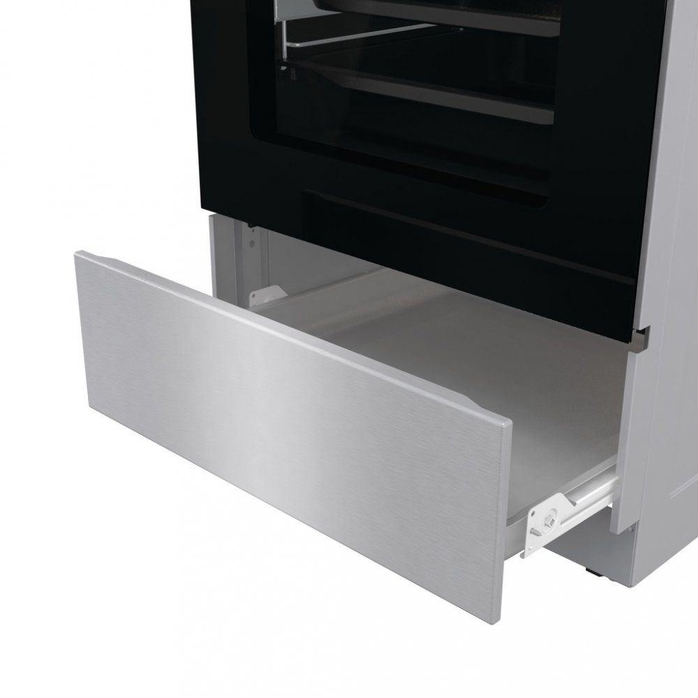 Obzvlaste velky a hluboky ulozny prostor ve spodni casti sporaku poskytuje misto pro ulozeni vetsiho hrncu, pekacu nebo kuchynskeho nacini – s timto pohodlnym uloznym resenim mate vse, co potrebujete, po ruce.