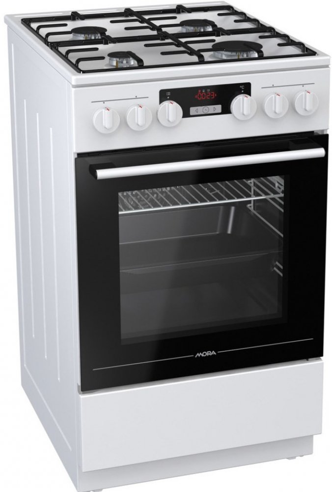 kombinované 44.1 kg bílá Mora 8 plynové nerezové otočné knoflíky 4 A 1.03 kWh 3200 W 62 l 59.4 cm 85 cm 50 cm prolisy hydrolytické