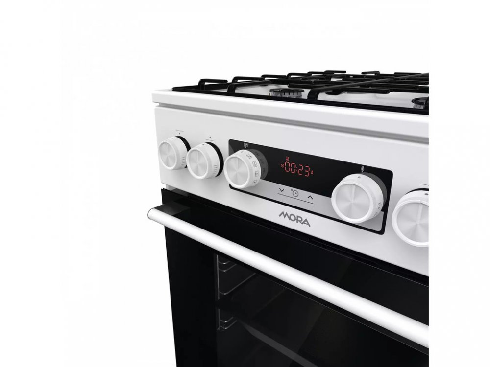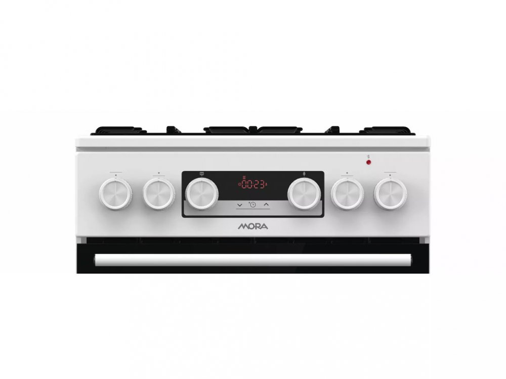 Kombinovaný sporák Mora K 7655 CW v bílém provedení s multifunkční troubou v objemu 70 l Vás překvapí energeticky úspornou třídou A.