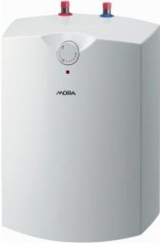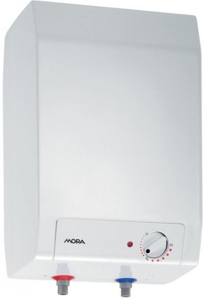 Beztlaký ohřívač vody MORA o objemu 5 litrů se montuje jednoduše nad umyvadlo.