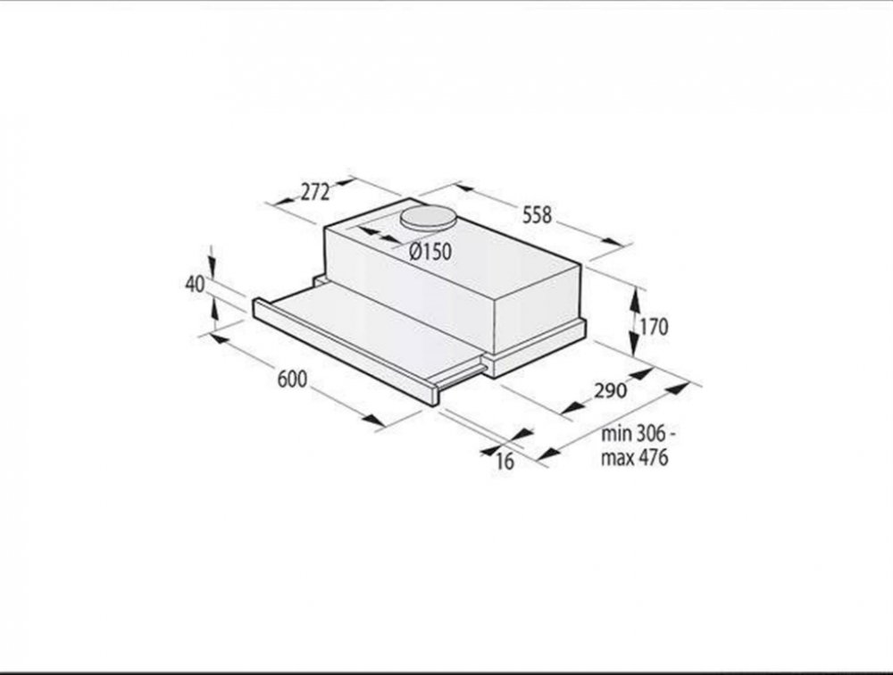 Rozměry (V bez komínu ׊×H) 170 × 600 × 306 mm