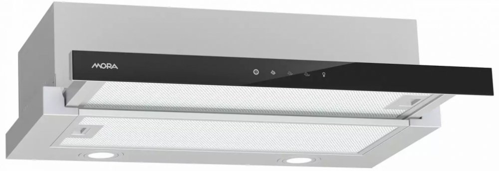 Vestavný výsuvný odsavač par MORA OT 692 XGB v černo-nerezovém provedení a s výkonem 350 m3/h spolehlivě odstraní z kuchyně všechny nežádoucí pachy. Díky posuvnému čelu odsavač dokonale splyne s kuchyňskou linkou, protože motor s horním odtahem je skrytý uvnitř skříňky. Odsavač má tlačítkové 3 rychlostní ovládání umístěné pod lištou a LED osvětlení s výkonem 3 W, které perfektně osvítí varnou plochu a vy tak budete dokonale vidět do hrnců či pánví na připravovaný pokrm. Je opatřen omyvatelnými hliníkovými filtry proti mastnotě s polyuretanovou pěnou, které lze mýt v myčce. Při dokoupení uhlíkových filtrů lze odsavač provozovat i na recirkulaci.