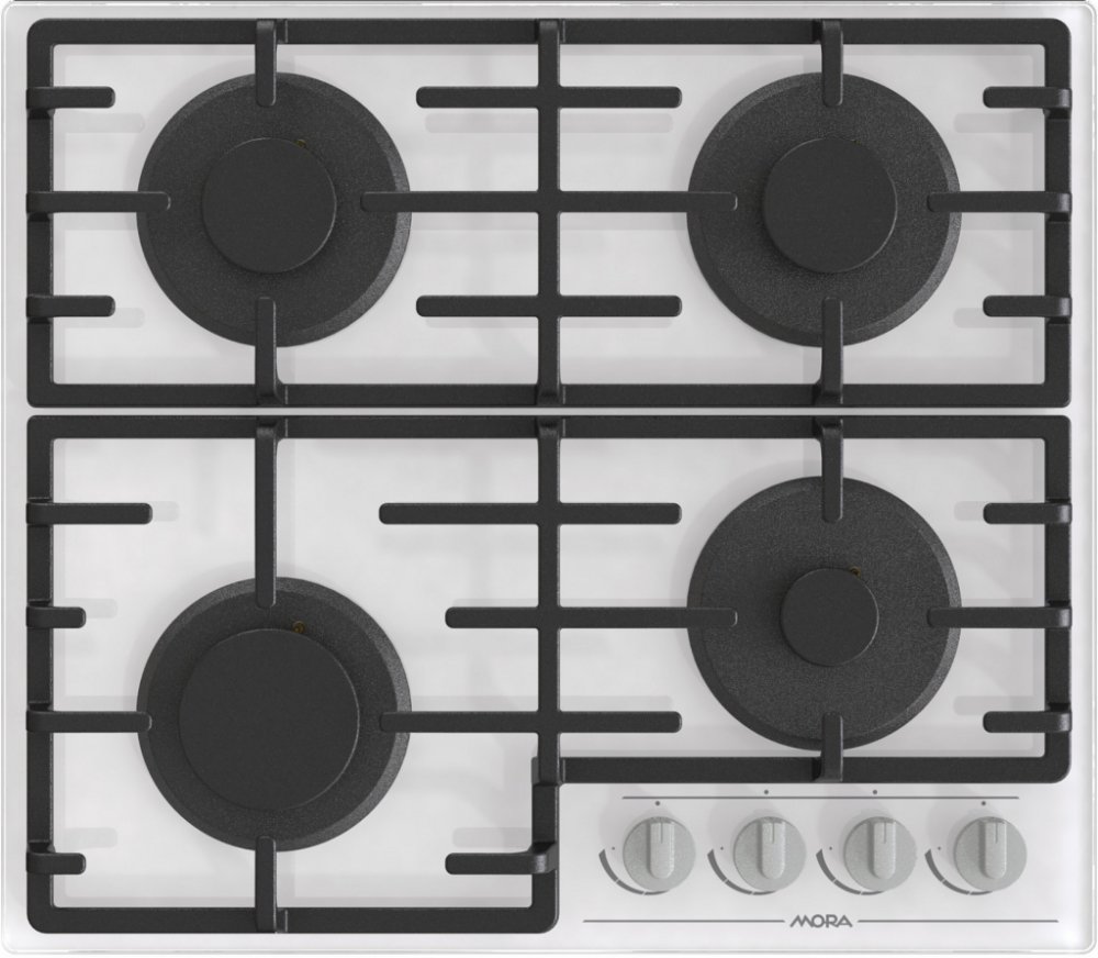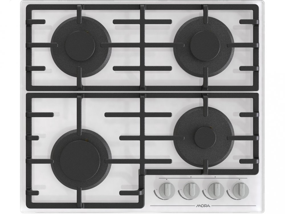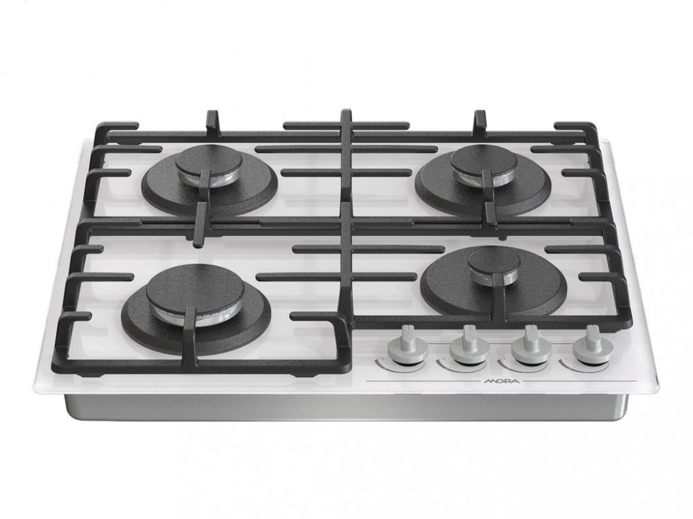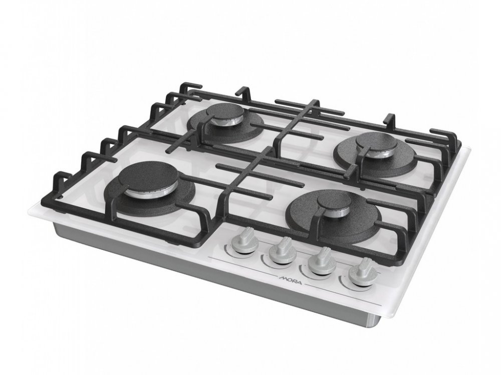 Plynová varná deska MORA VDP 645 GW7 na bílém tvrzeném skle splňuje nejvyšší nároky vaření na plynu a snadné údržby.