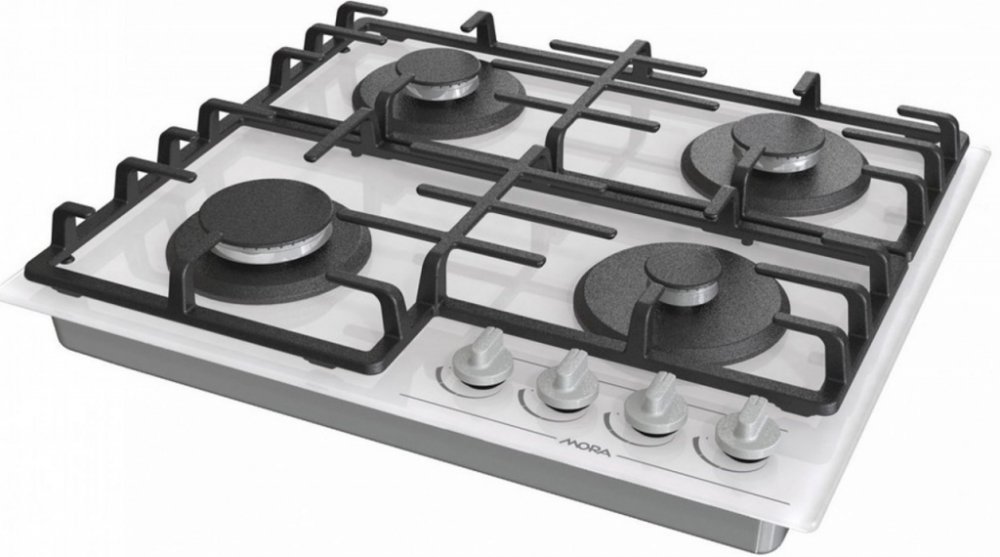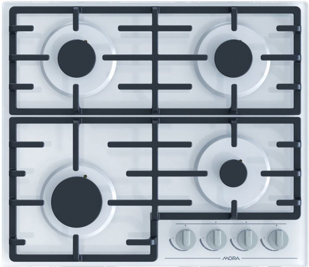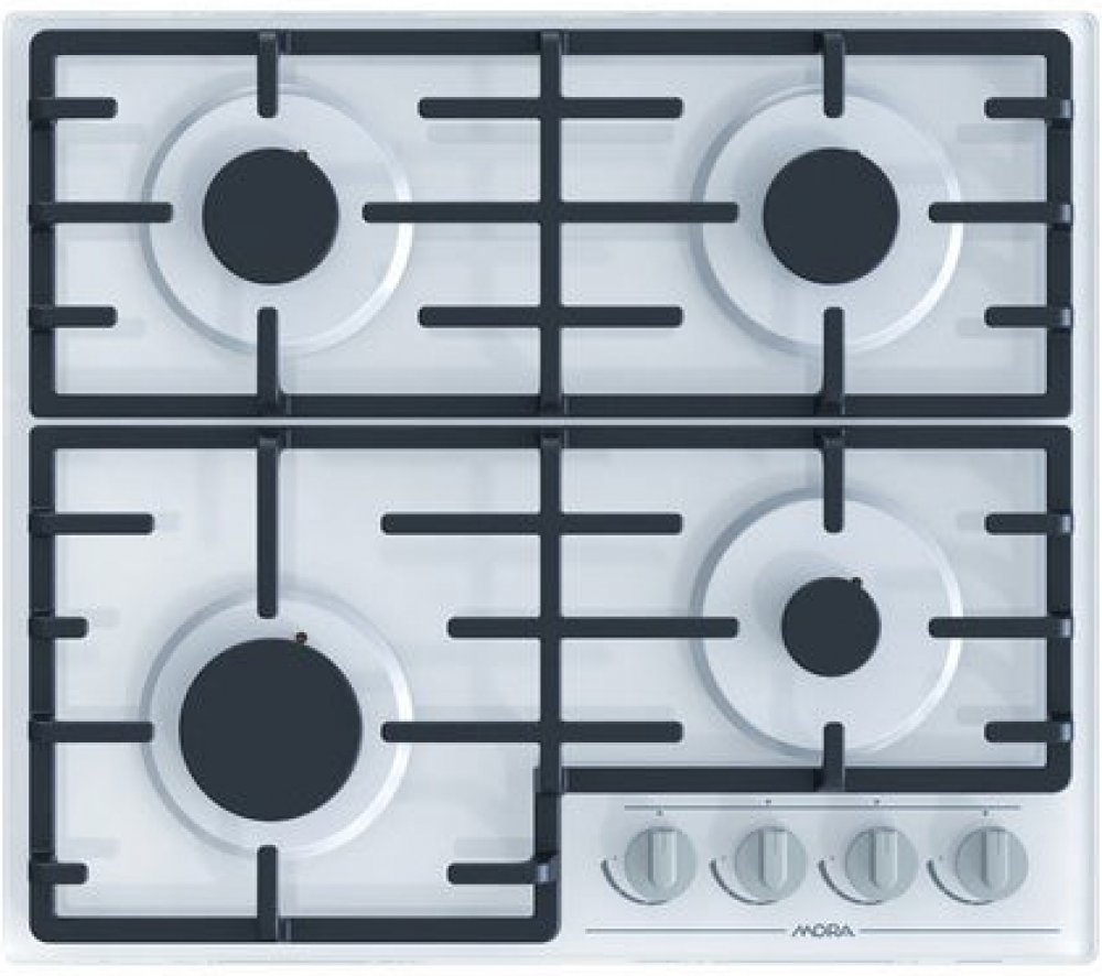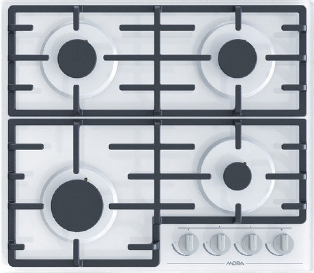 Plynová varná deska MORA VDP 645 GW7 na bílém tvrzeném skle splňuje nejvyšší nároky vaření na plynu a snadné údržby.