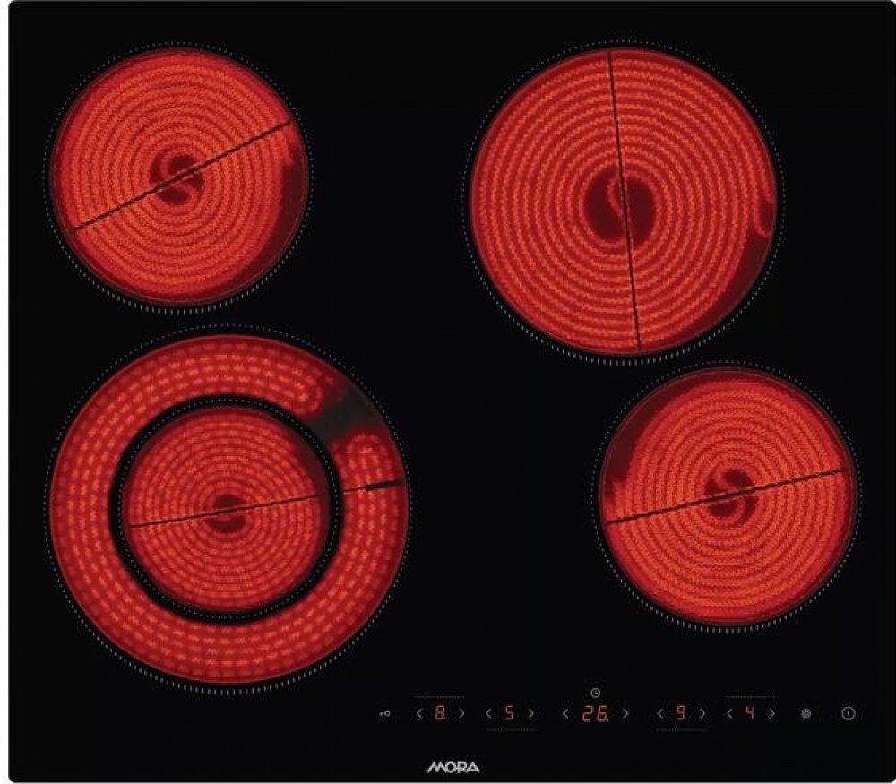 Mora sklokeramické 7.4 kg 4 sklokeramické dotykové 0 černá 6400 W 5.1 x 59 x 52 cm 59 cm 52 cm