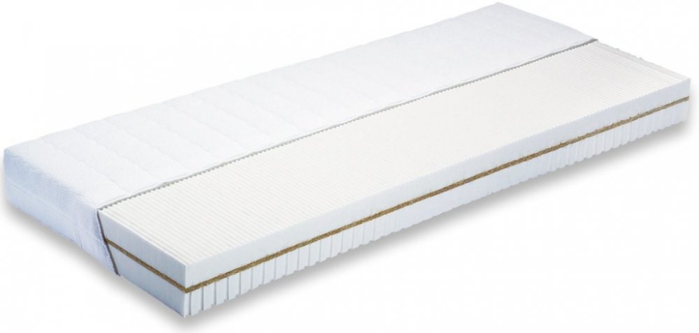 Ceněna je především vzdušnost jádra, která pomáhá eliminovat vlhkost a zabraňovat množení roztočů. Výborně pružná, optimálně tuhá a tvarově stálá matrace z pěnové pryže (latex) se zvýšenou nosností. Záruka optimálního uvolnění v průběhu spánku a svěžího probuzení pro dny plné energie. Díky dobrým ortopedickým vlastnostem je vhodná i pro osoby dlouhodobě upoutané na lůžko. Standardní potah OLYMPIC.