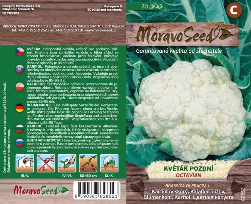 Polopozdní odrůda, určená pro podzimní sklizeň. Rostliny jsou silnějšího vzrůstu s bílou růžicí se střední hrbolovitostí, odolnou proti fialovění. Vyžaduje pravidelnou zálivku a dostatečnou zásobu živin. Vegetační doba od výsadby je 85-95 dnů.