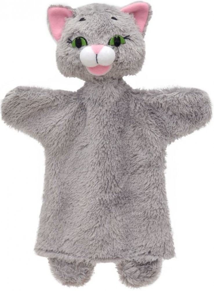 Textilní maňásek na ruku Kočička šedá pro děti na hraní maňáskového divadla