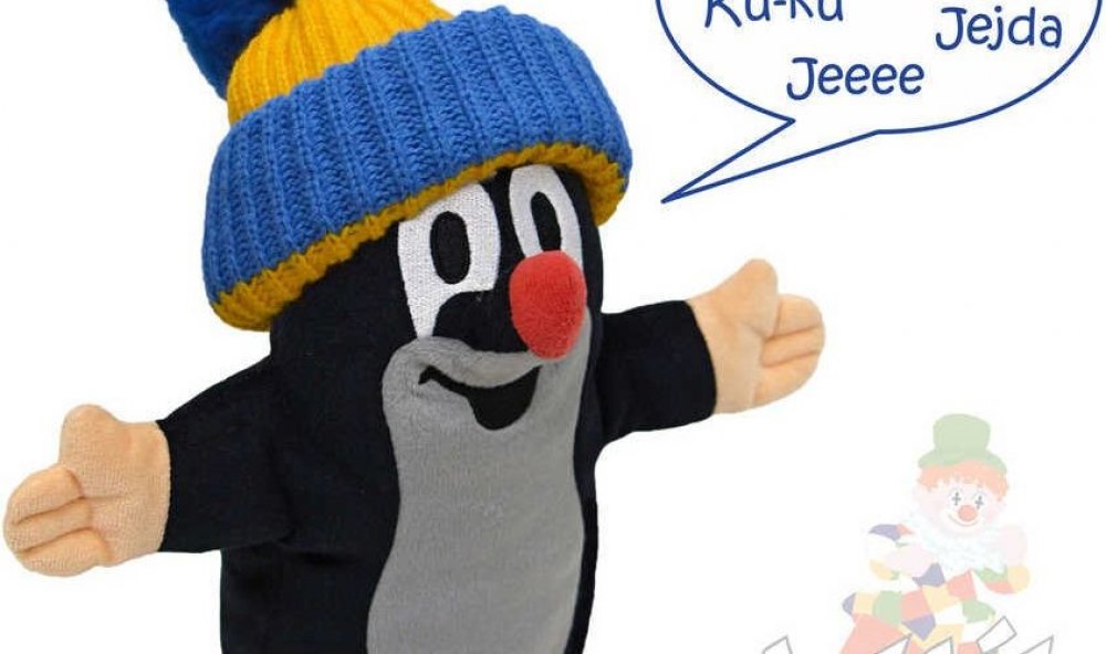 Plyšový maňásek Krtečka na ruku, mírně vycpaný, oči vyšívané. Pratelný bez zvukového modulu. Krteček po zmáčknutí náhodně přehrává vybrané originální zvuky z pohádek o Krtečkovi.