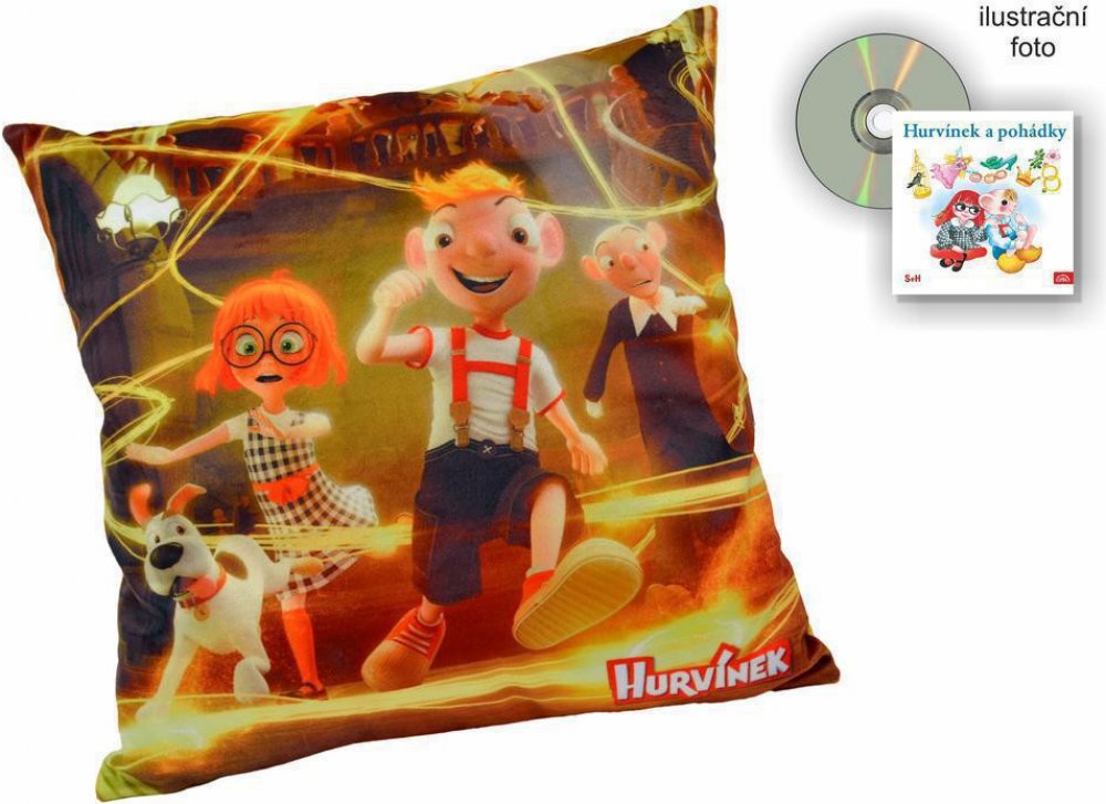 Měkoučký polštářek s motivy filmového Hurvínka, vhodný do postýlky, na cesty i jako dekorace do pokojíčku. Měkoučký polštářek s motivy filmového Hurvínka, vhodný do postýlky, na cesty i jako dekorace do pokojíčku. Materiál mikrovelur, obrázek tisk, náplň duté vlákno. Pratelný. Bonus: CD s příběhy Hurvínka.Vyrobeno ručně v ČR.Rozměr: 30 x 10 x 30 cm (š x v x h).© ROLLING PICTURES spol. s r.o.