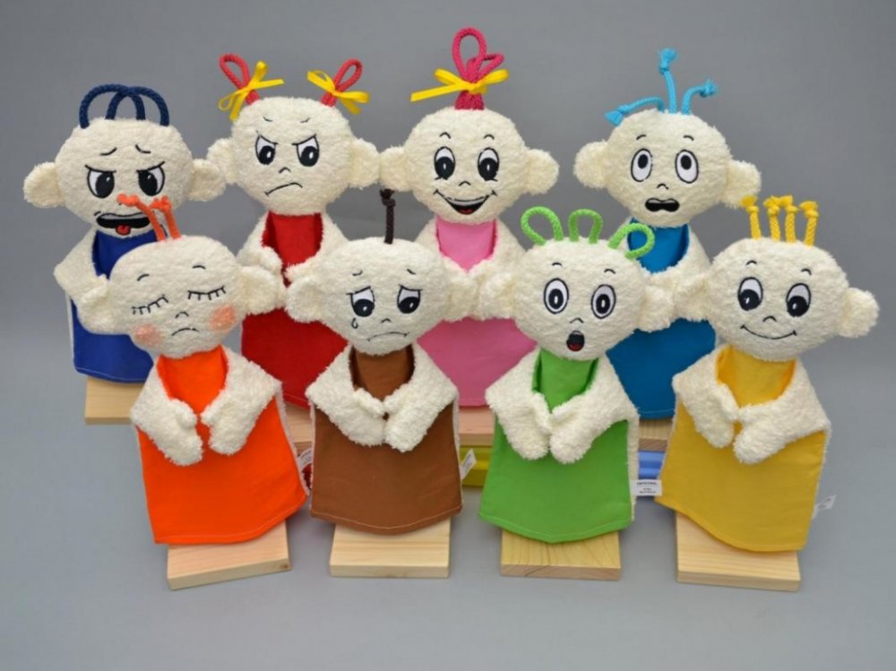 Pomůcky pro rozvoj emoční inteligence. Hraním si s maňásky se dítě naučí určit jednotlivé emoce a pojmenovat je. V další fázi může třídit emoce mezi příjemné a nepříjemné nebo si hrát s maňásky scénky, ve kterých se spojují emoce se správnými situacemi.