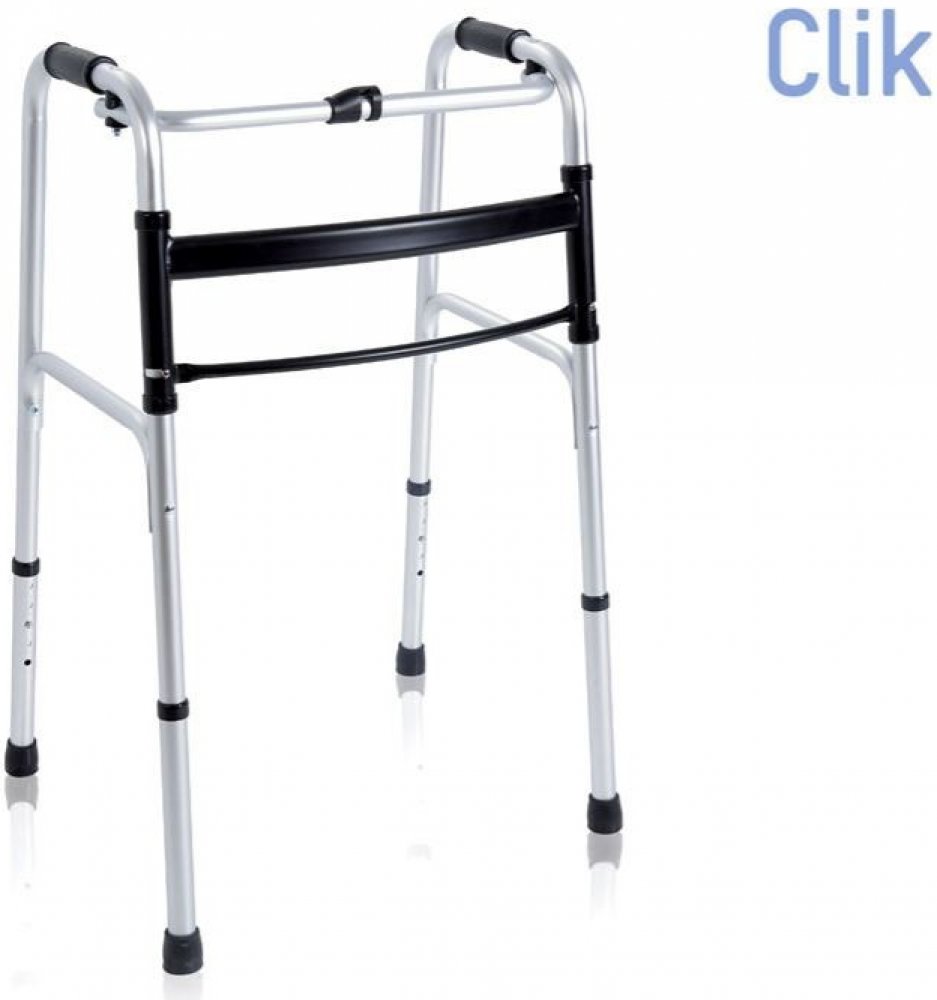 Pevné čtyřbodové skládací chodítko. Chodítko je vyrobeno z eloxovaného hliníku (speciální povrchová úprava hliníku). Chodítko je vybaveno polstrovanými madly, protiskluzovými gumovými hroty.