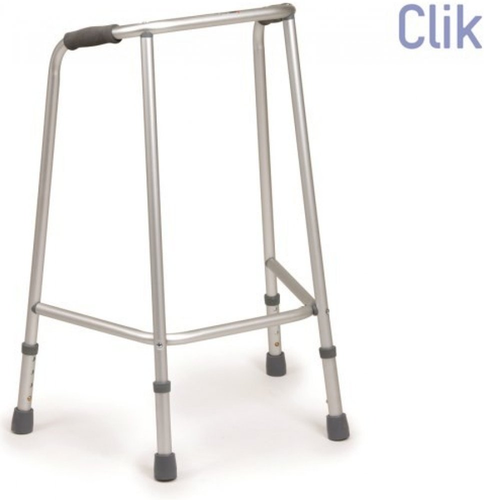 Pevné čtyřbodové chodítko. Chodítko je vyrobeno z eloxovaného hliníku (speciální povrchová úprava hliníku). Chodítko je vybaveno polstrovanými madly, protiskluzovými gumovými hroty.