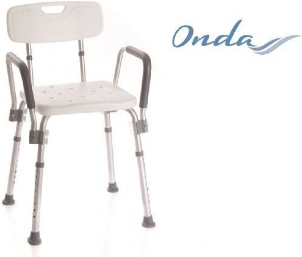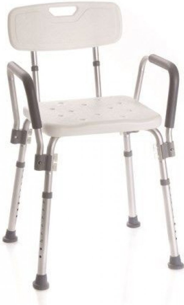Židle do sprchy disponuje výškovou stavitelností a područkami. Má protiskluzové nástavce proti sklouznutí.