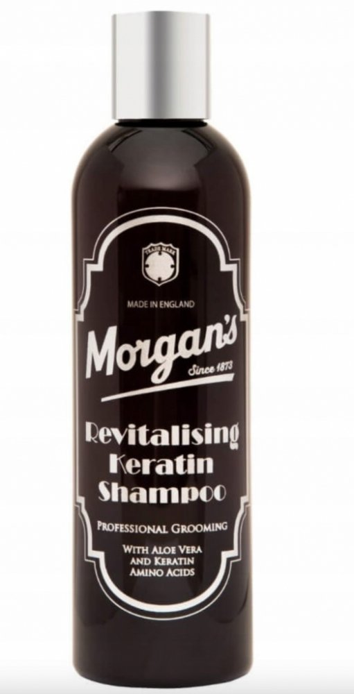Morgans pánské pro všechny typy vlasů 250 ml na suchou pokožku tekuté 280 g pro domácí použití (100–300 ml) keratin, aloe vera, panthenol, vyživující polymery