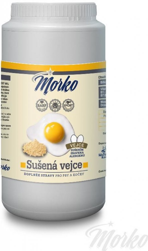 Sušená vejce mají vysoký obsah bílkovin a tuků a pozitivně ovlivňují celkový zdravotní stav sportovních psů ve vysoké zátěži a pravidelným užíváním se výrazně zlepšuje jejich výkon, urychluje rekonvalescenci u psů po operaci a po úrazech, dodává sílu starším i podvyživeným psům.