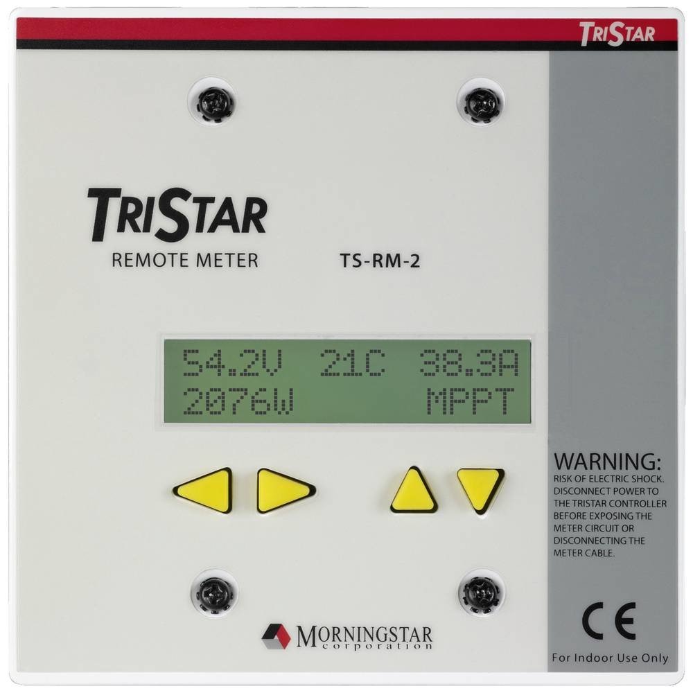 Tristar Meter 2 (TS-M-2) a Tristar Remote Meter 2 (TS-RM-2) od společnosti Morningstar jsou pokročilé digitální měřicí přístroje, které lze použít s každým solárním regulátorem TriStar™. Oba tyto číta