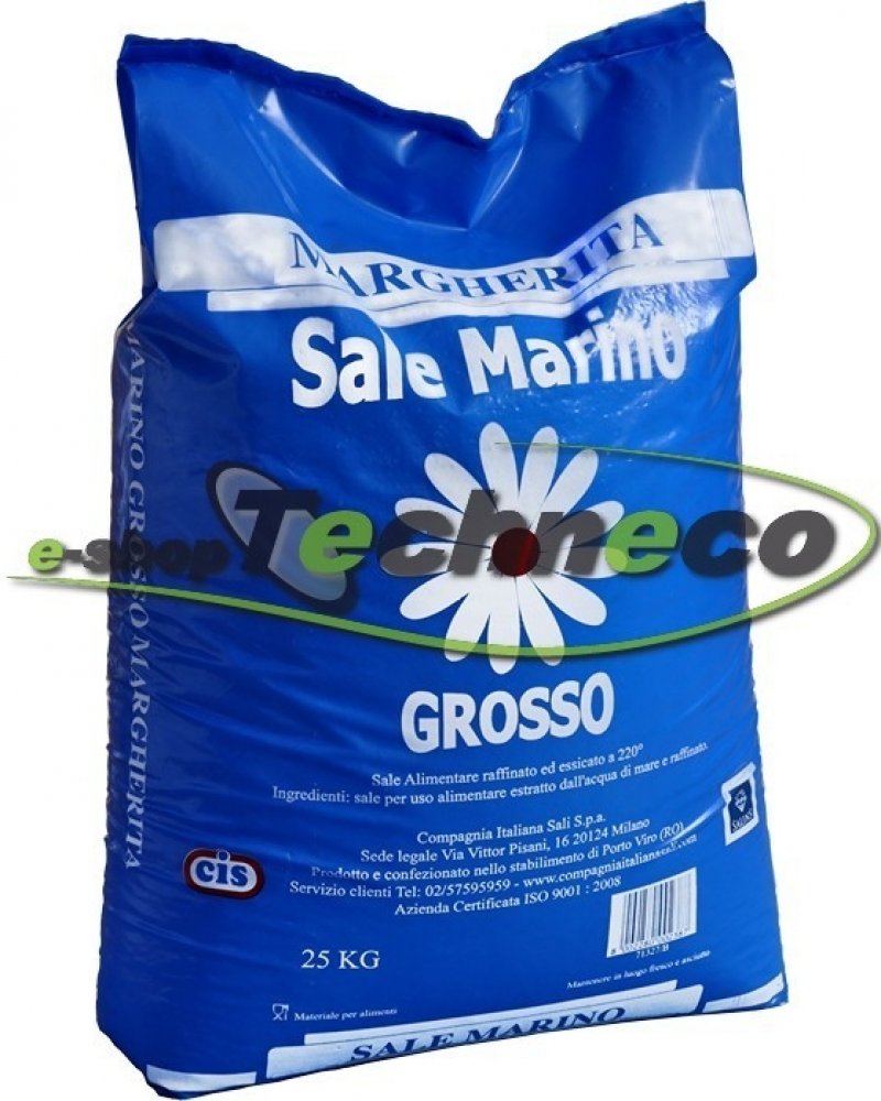 Stručný popis:Mořská sůl Margharita 25 kg je balena a vyráběna firmou Compagnia Italiana Sali v Itálii. Systém výroby a celkové přípravy umožňuje využívat tuto sůl jak pro bazénovou technologii, tak jako jedlou sůl určenou přo přípravu pokrmů. Díky vysoké čistotě a obsahu přírodních minerálů je mořská sůl Margharita ideálním solným produktem pro přípravu solných koupelí či úpravu bazénové vody pro všechny, kterým záleží na kvalitě.Dávkování:2 až 5 kg na 1000l bazénové vody dle doporučení výrobce salinizační jednotky.Podrobný popis:Mořská sůl Margharita Sale Marino Grosso je špičkový solný produkt v potravinářské kvalitě renomovaného italského výrobce soli Compagnia Italiana Sali (CIS). Sůl je získávána z mořské vody na pobřežních solných polích a následně převážena do výrobního závodu CIS v Porto Viro. Mořská sůl je volně skladována na rozsáhlých venkovních plochách. V průběhu procesu úpravy je sůl nejprve převedena do silně koncentrovaného roztoku, ze kterého následně krystalizuje čistý chlorid sodný. Sušení krystalů soli probíhá proudem horkého vzduchu o teplotě až 220°C . Dalším výrobním krokem je prosévání krystalů NaCl na sítech s různě velkými oky, čímž dochází k rozdělení na jednotlivé velikostní frakce, a jejich balení. Celý výrobní proces splňuje přísné legislativní požadavky, kladené na výrobu potravin a surovin, určených pro použití k potravinářským účelům. Samozřejmostí je pravidelná analýza vzorků z jednotlivých fází výrobního procesu ve zkušební analytické laboratoři.Z výše uvedeného je zřejmé, že mořská sůl Margharita Sale Marine Grosso splňuje ty nejnáročnější požadavky, kladené na solné produkty, a je možné ji bez problémů použít i pro úpravu vody v bazénech či k solným domácím koupelím.