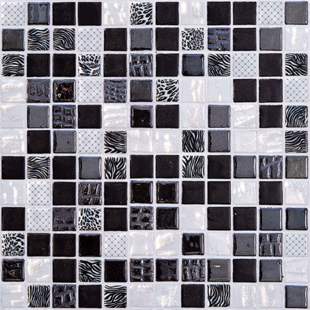 Skleněná mozaika bílá; černá SAFNEG se smíšeným povrchem a čtvercovým tvarem jednotlivých prvků mozaiky.Výborně se uplatní jako obklad do kuchyně, do koupelny, do sauny a wellness.Je vhodná pro použití jako obklad a dlažba pochozí jen naboso.Spára této mozaiky je 2.0 mm a velikost dílků mozaiky je 2,5x2,5 cm. Plata pro montáž mají rozměr 31,6x31,6 cm a tloušťka obkladu je 4 mm.Tato mozaika je mrazuvzdorná.Pokud potřebujete poradit, neváhejte se na nás obrátit.