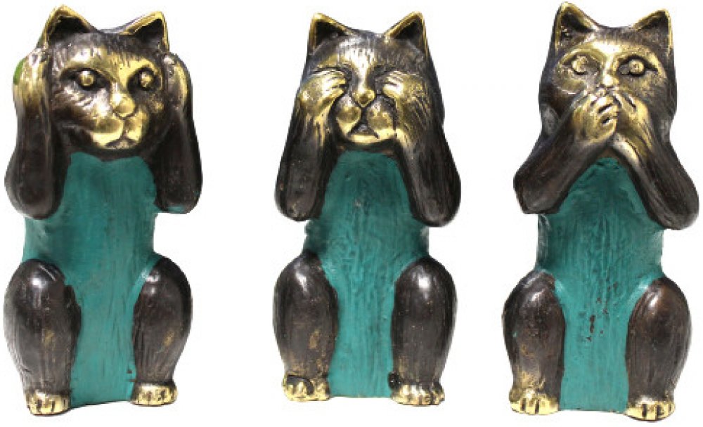 Mosazné sošky kočky "nevidím, neslyším, neříkám zlo"