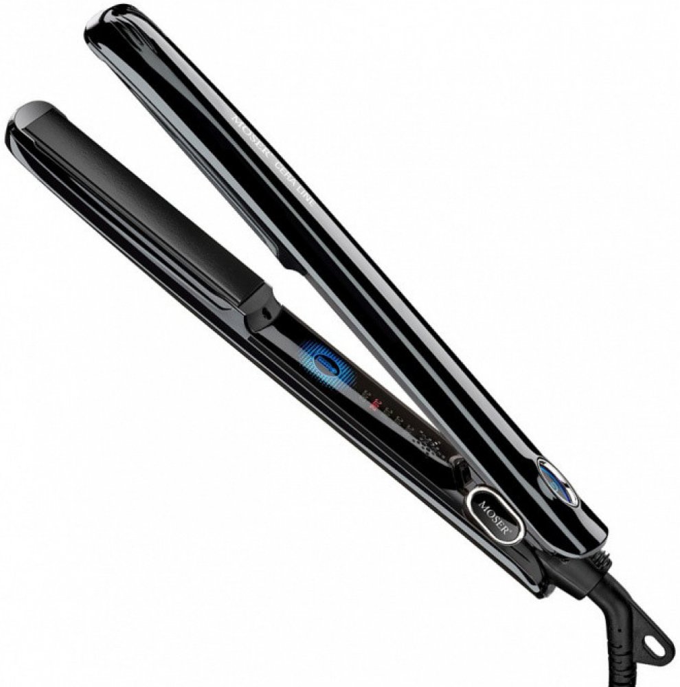 Nová profesionální a luxusní kadeřnická žehlička na vlasy Moser Ceraline. Keramicko-turmalínová technologie činných ploch. Teplotu od 150 °C – 230°C nastavíte dotykovým displejem. Ultra rychlé nahřívání - pouze 25 s. Automatické vypnutí po 60 minutách. Kabel s otočným kloubem o délce 2,7 m.
