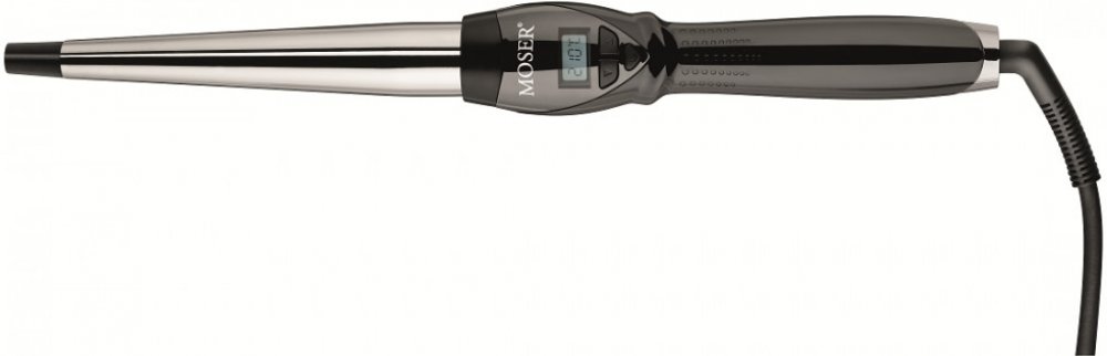 Profesionální kónická kulma na vlasy Moser CurlPro2, se kterou vytvoříte krásné spirálovité lokny o velikosti 25 mm zužující se na 13 mm. S touto kulmou dokázete vlny podle svých představ.