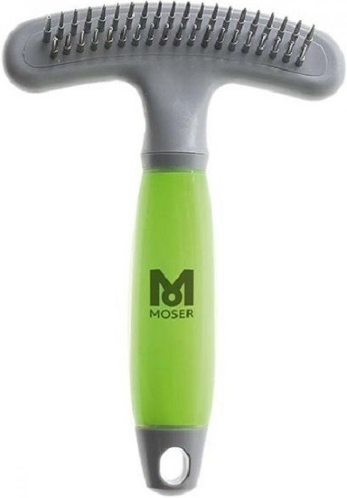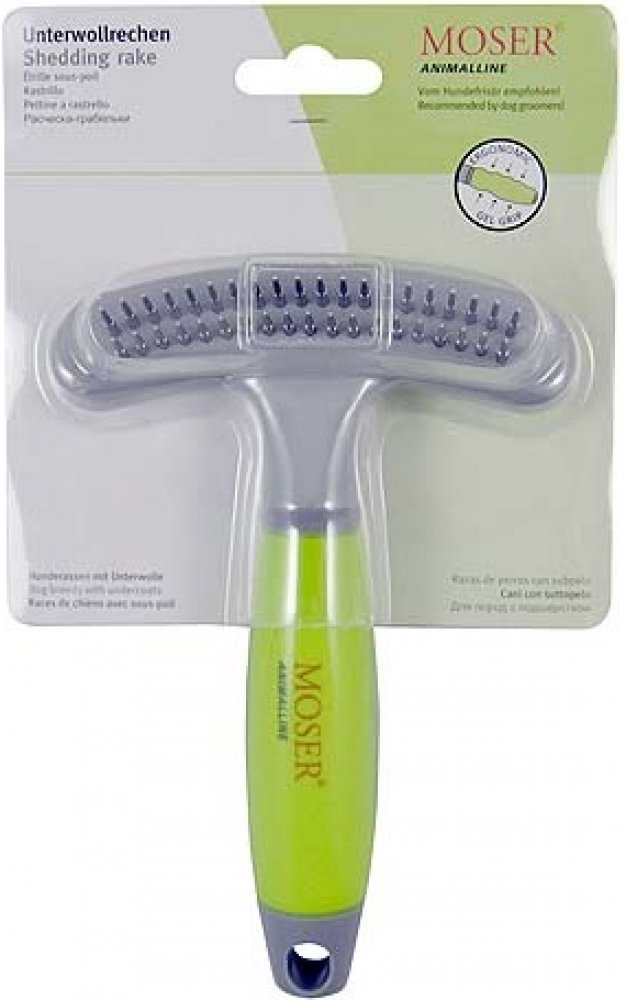 Hrabičky pro psy na vyčesání podsady Wahl s otočnými kovovými hroty efektivně rozčešou a odstraní starou podsadu ze srsti. Díky dvojité řadě kovových hrotů odstraníte maximum podsady s minimální námahou v krátkém čase. Ergonomické gelové držadlo pro snadný úchop. Rozměry: celková délka 18 cm, délka rukojeti 11,5 cm, šířka pracovní části 10 cm, rozestup nožů 0,4 cm, hmotnost 106g.