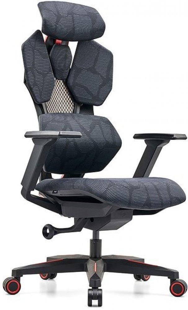 síťovina potažení, synchronní mechanika s aretací, bederní a hlavová opěrka, výška, rotace vrchní části, posun dopředu / dozadu a posun doleva / doprava područky, otočná, ergonomická a plastová konstrukce, výplň sedáku studená pěna (HR pěna), plast kříž, plastová kolečka, černá a červená barva, nosnost 200 kg (MSH-ARC-02)