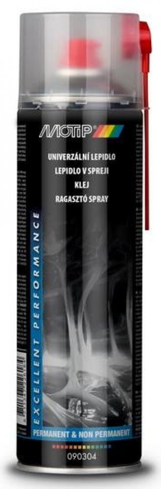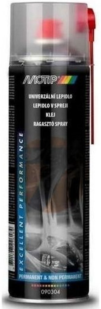 Motip lepidlo univerzální ve spreji 500 ml • pro stálé i dočasné přilepení • vhodné na papír, dřevo, textil, plasty • pro lepení rozsáhlých ploch • rychle schnoucí • snadno ovladatelný • široký úhel rozstřiku okolo 10 cm • barva: bílá - transparentní • charakteristický zápach • tepelně odolný: až do 80°C • doba schnutí: 2 - 5 min • doba schnutí závisí na okolní teplotě, vlhkosti vzduchu a tloušťce...