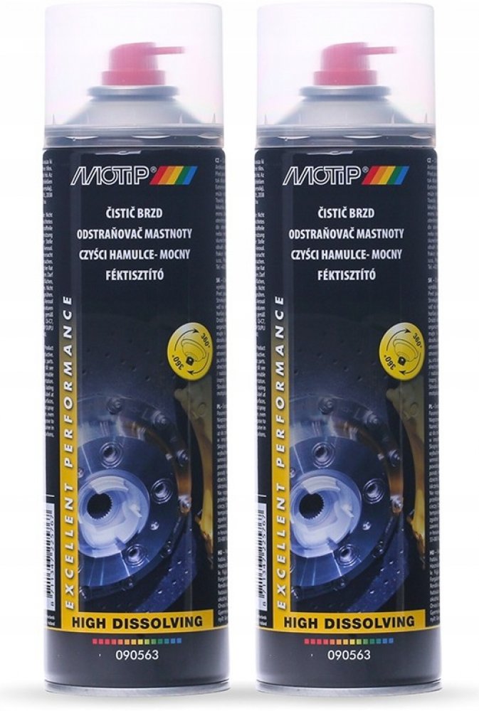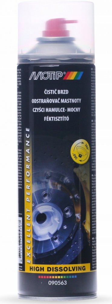 Čistič brzd se silně rozpoštěcími vlastnostmi. Tryska 360°
