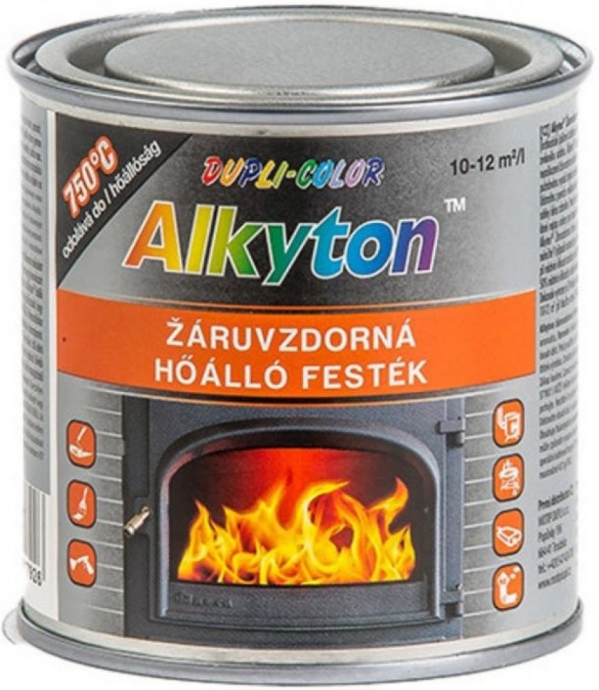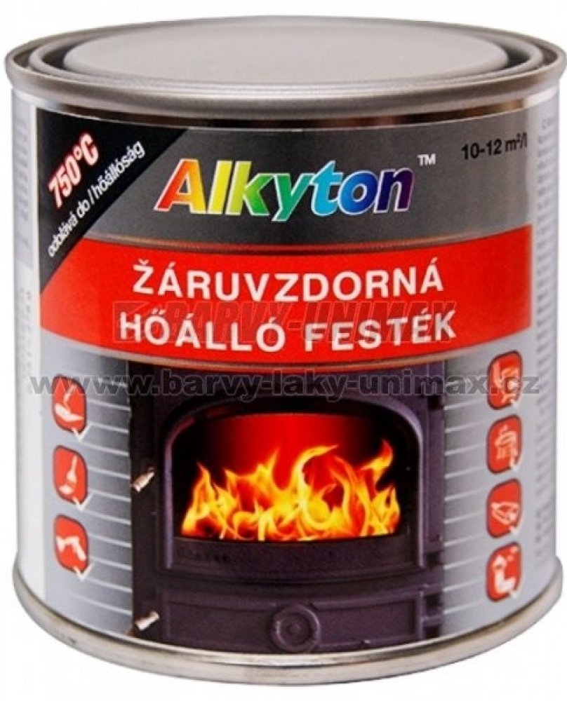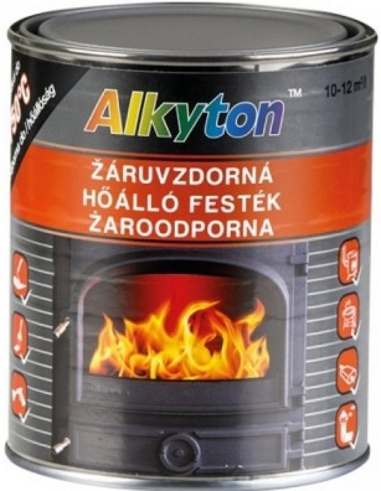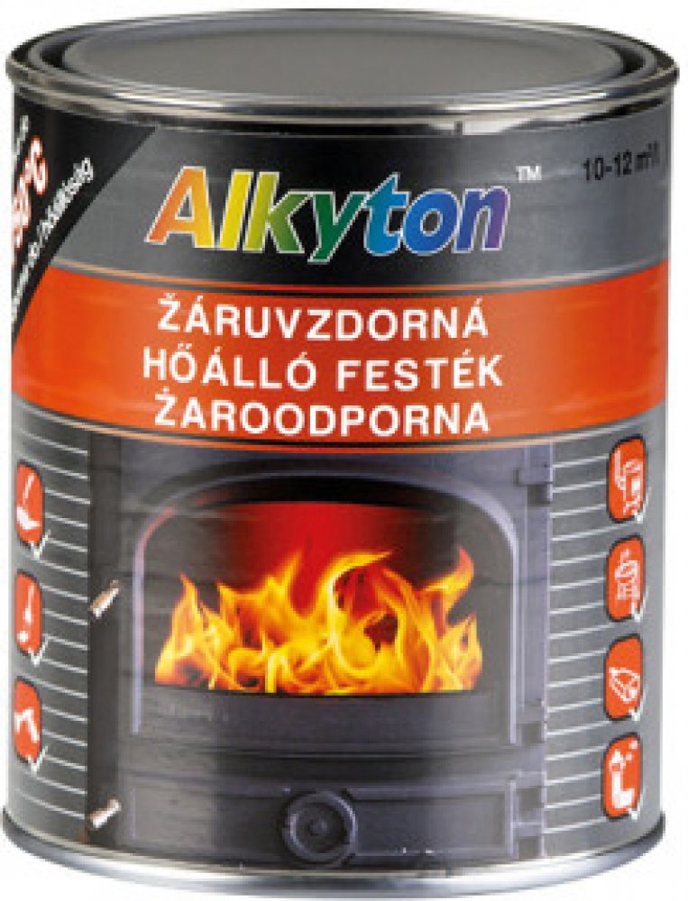 Alkyton a ndash; Žáruvzdorná barva ve všech provedeních je určena pro aplikace na novou nebo dobře očištěnou ocel, železo a litinu, na mírně zkorodovaný povrch, nebo na staré fungující nátěry žáruvzdorných barev. Uplatní se především při použití na kamnech, krbech, kouřovodech, zahradních grilech, výfucích, kotlech a všude tam, kde je zapotřebí odolnost proti vysokým teplotám a to v interiéru nebo chráněném exteriéru.
