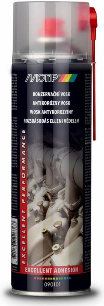 MOTIP konzervační vosk 090101D chrání povrch před korozí, počasím a slabými kyselinami. Po nastříkání a následném odpaření zůstane jen průhledný film, nástřik tak neovlivní původní vzhled stříkaného materiálu. Použití: vosk proti korozi, odolný vůči počasí, slabým kyselinám a zásadám Vzhled: bílý, trasparentní Doporučená teplota aplikace: +5 až +30 °C