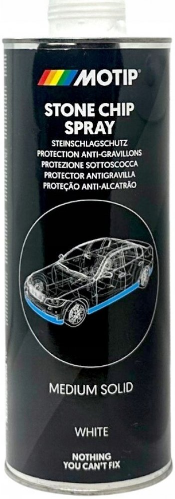 Nástřik podvozku - ochrana karoserie MOTIP - přelakovatelnýProstředek je na bázi syntetických pryskyřic. Vytváří pružnou vrstvu, která dokonale chrání před údery kamenů a působením mechanických vlivů. Používá se k ochraně prahů, nárazníků, spojlerů a jiných součástí karoserie automobilu. Výrobek vykazuje vysokou odolnost vůči stírání (odolnost před údery kameny). Lze ho lakovat všemi systémy laků.Návod k použití: