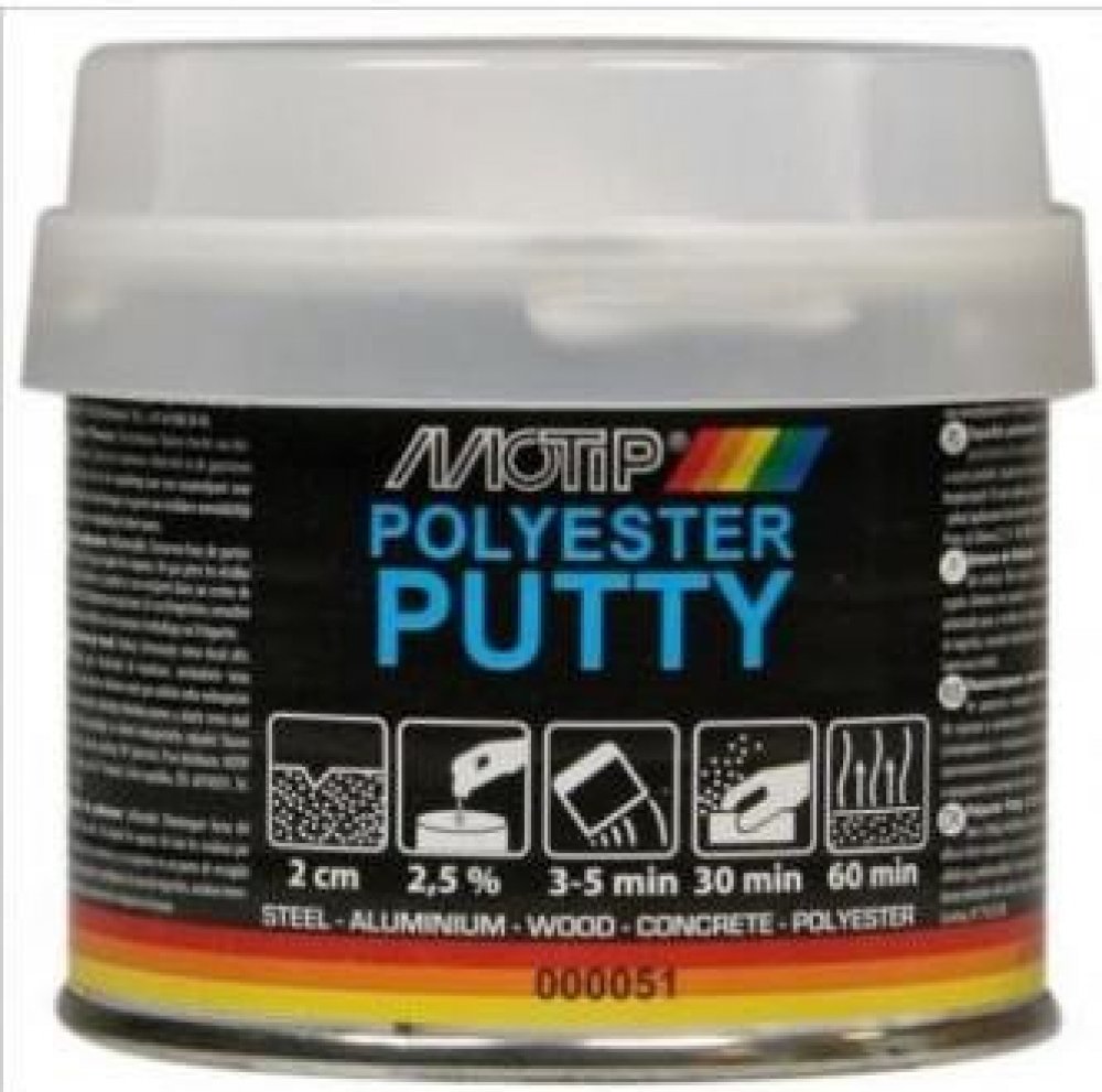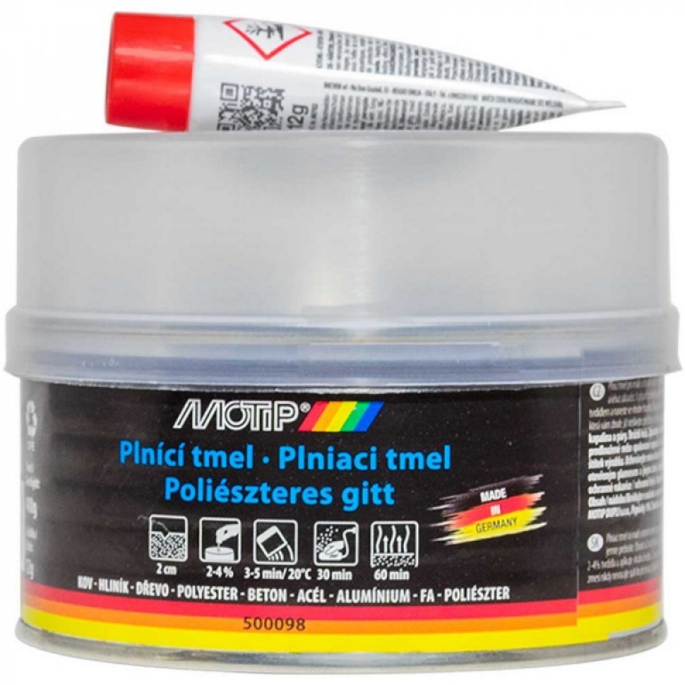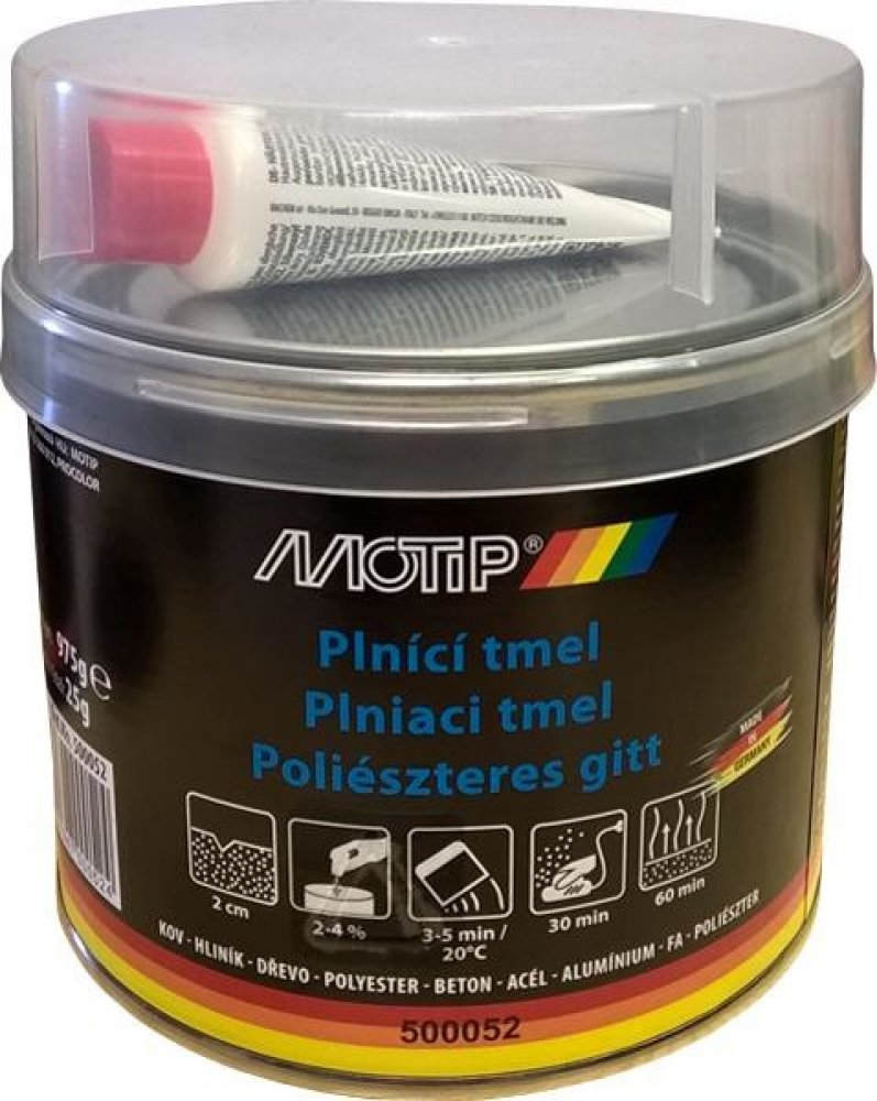 Univerzální dvousložkový polyesterový tmel k vyplnění otvorů na povrchu oceli, hliníku, dřeva, betonu a polyesteru.